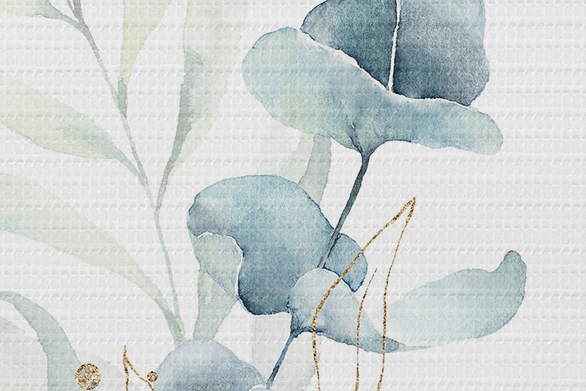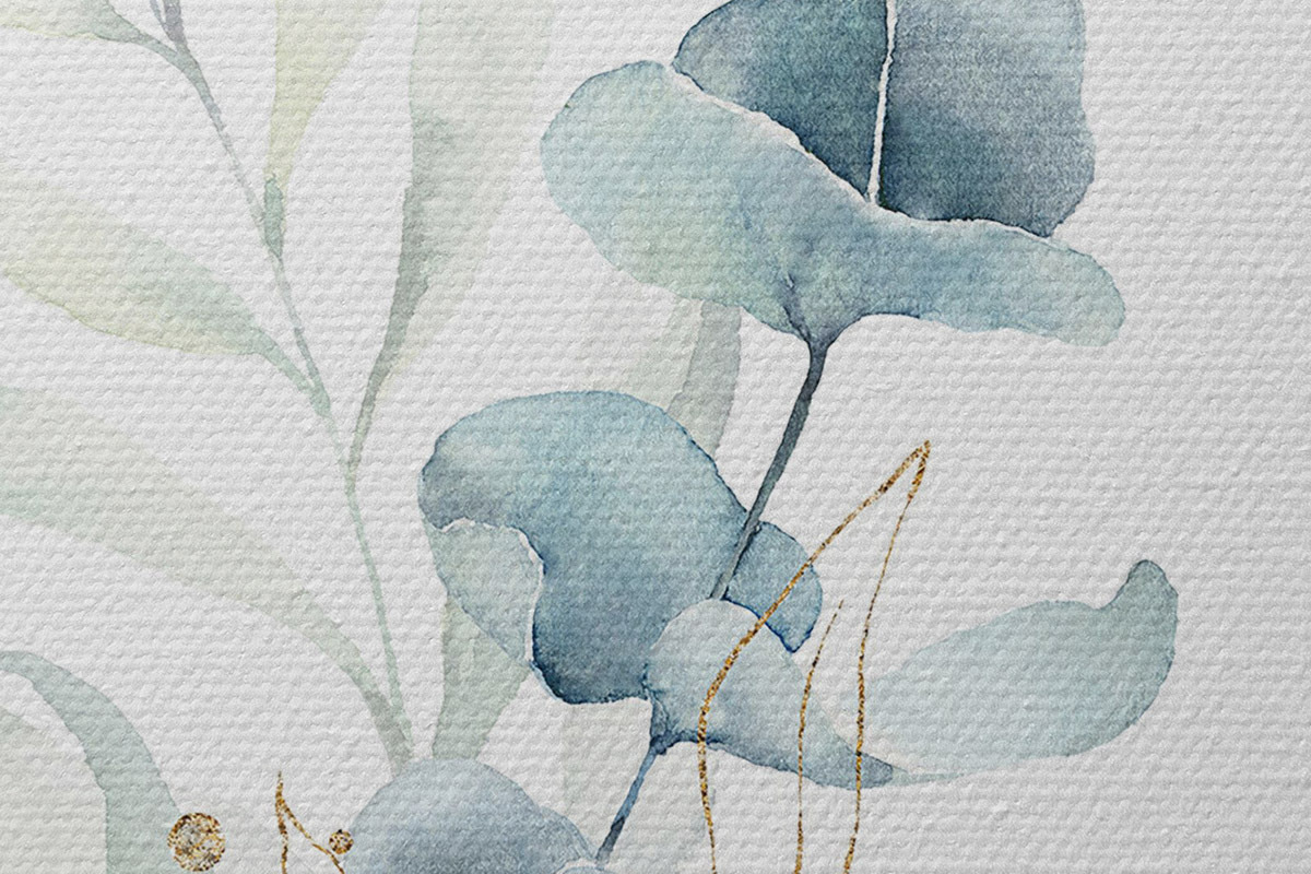 Runde Wandbilder Abstrakte Aquarellzeichnung von Zweigen mit blauen Blättern Nr r36139