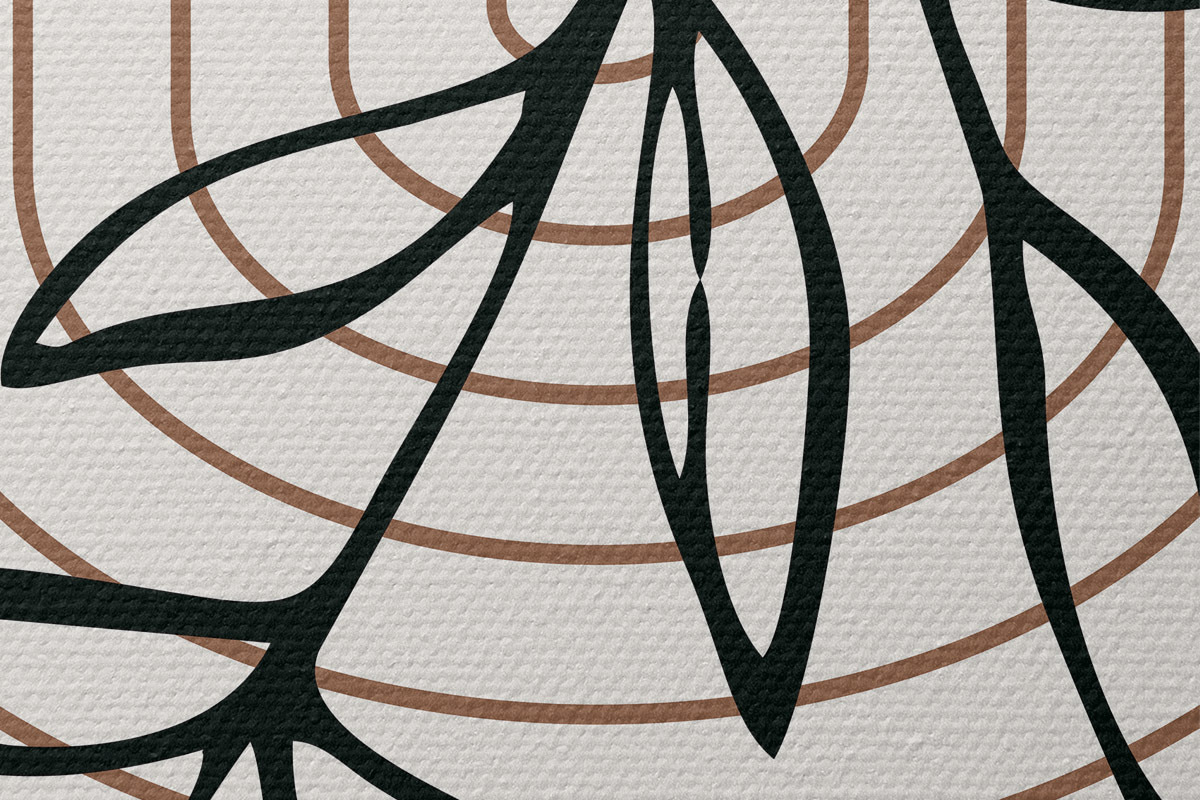Runde Wandbilder Geometrische Halbkreise mit hängender abstrakter Pflanze und Spirale Nr r36188