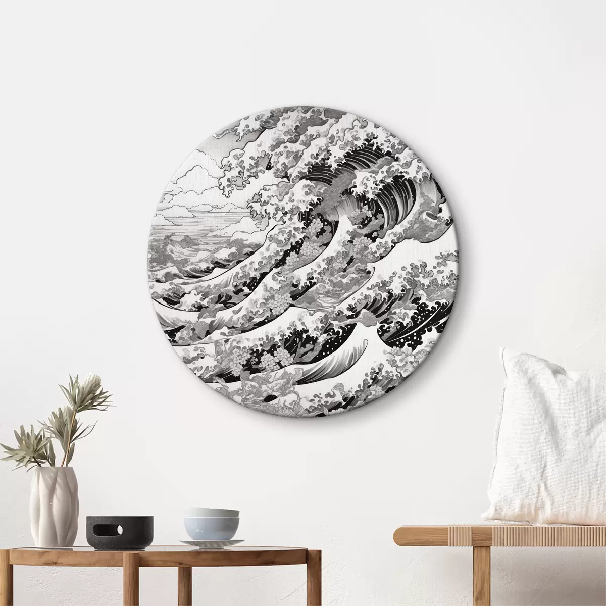 Runde Wandbilder Tsunami in Schwarz und Weiß. Nr r36234