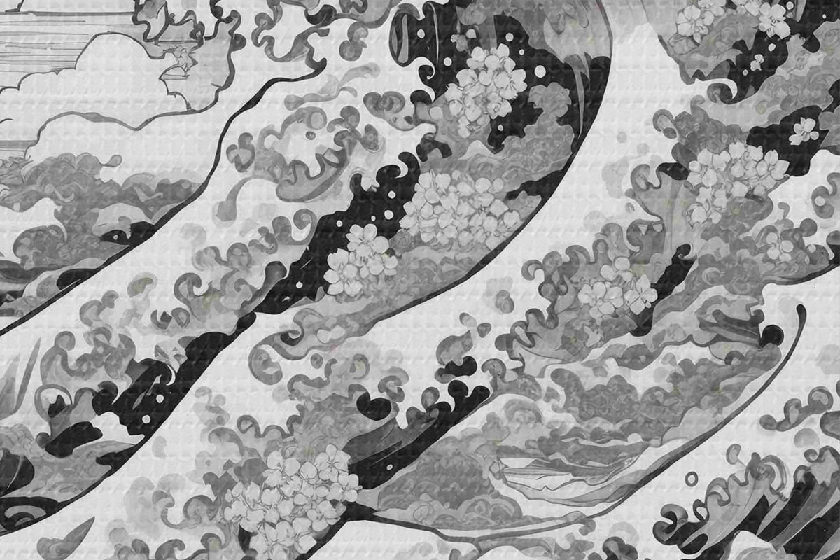 Runde Wandbilder Tsunami in Schwarz und Weiß. r36234