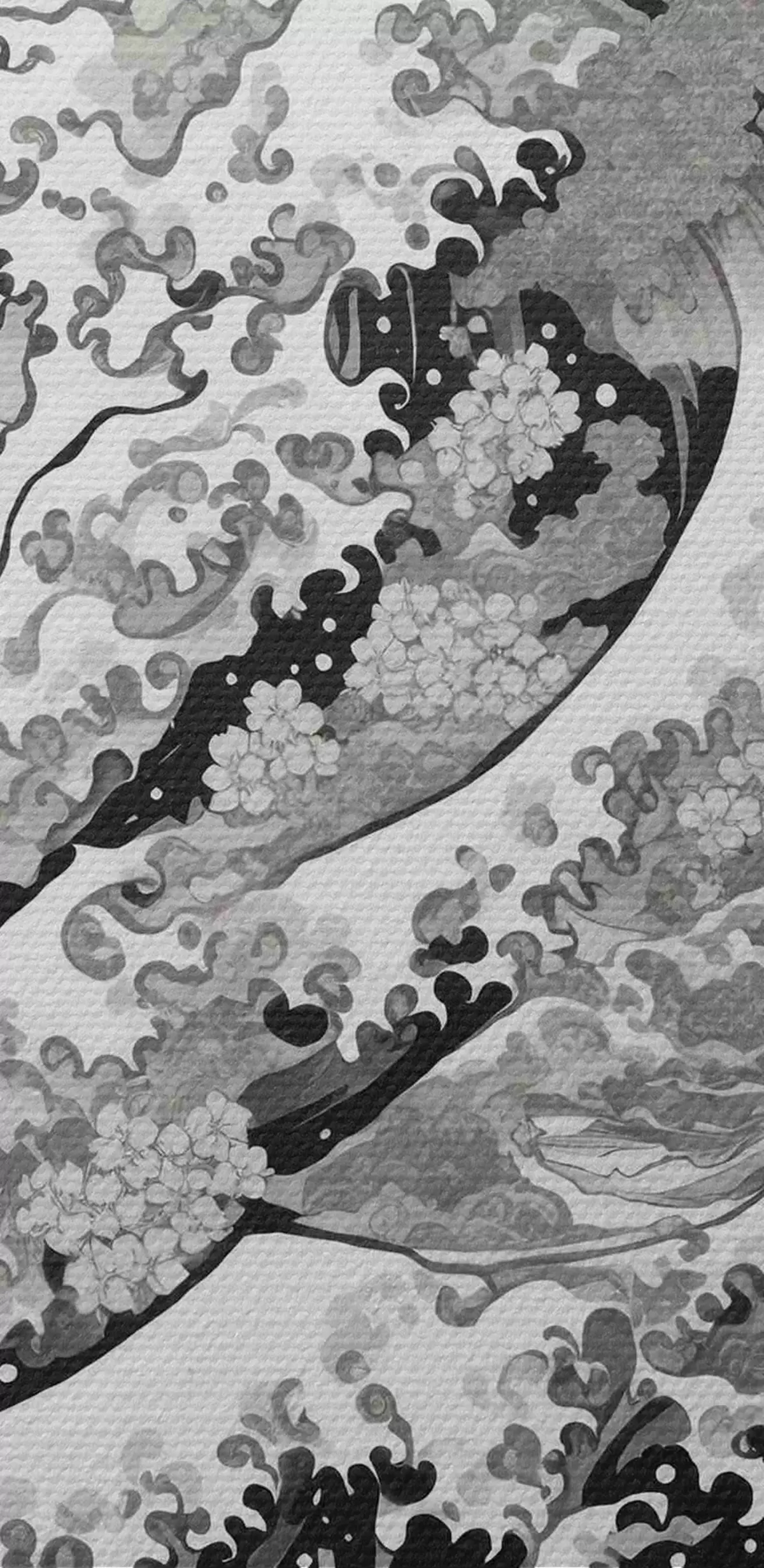 Runde Wandbilder Tsunami in Schwarz und Weiß Nr r36234