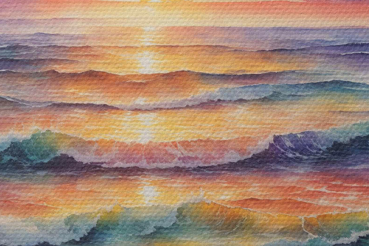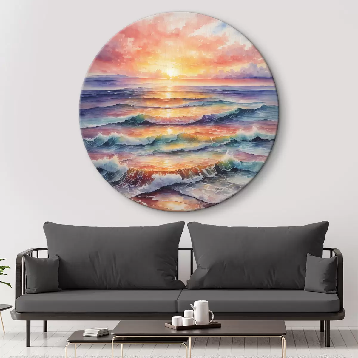 Runde Wandbilder Blick auf den Sonnenuntergang am Strand in Aquarell Nr r36241