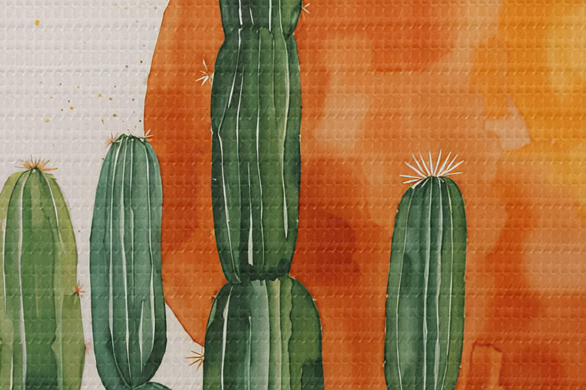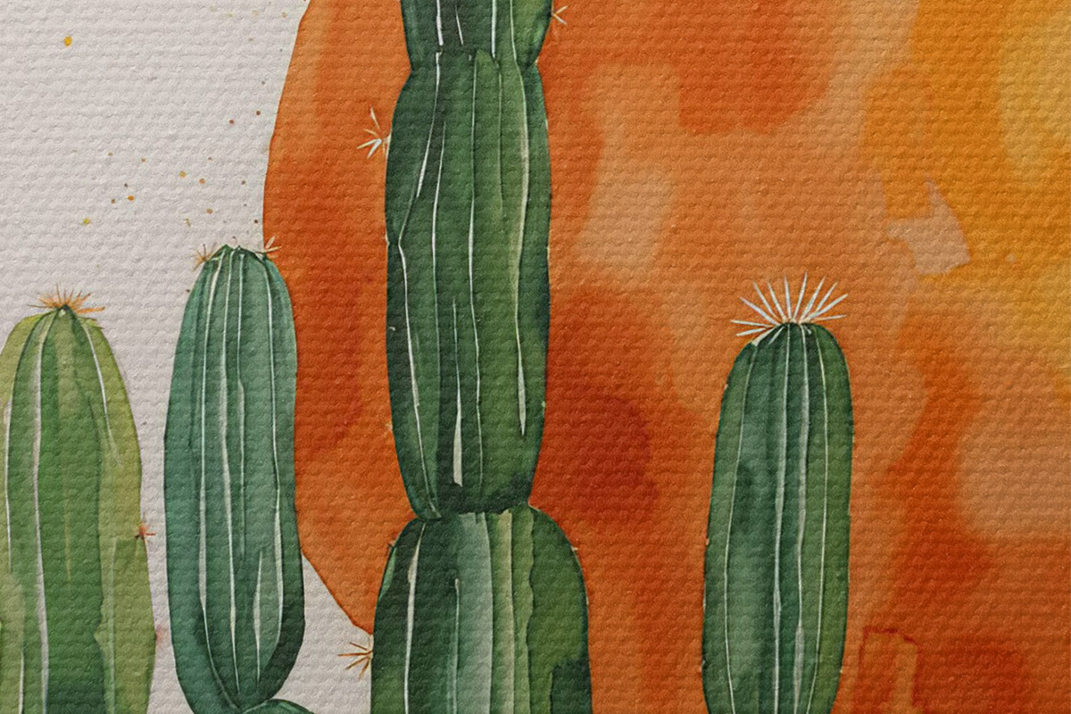 Runde Wandbilder Kaktus in der Wüste vor dem Hintergrund der Sonne in Aquarell r36269