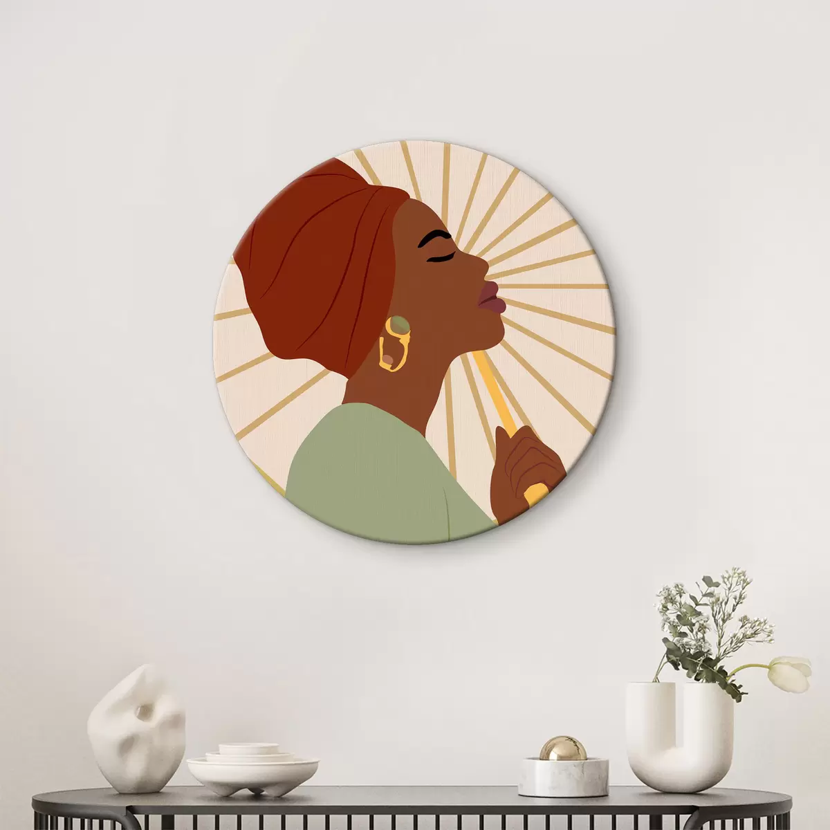 Runde Wandbilder Stilvolle Afro-Frau mit Regenschirm Nr r36340