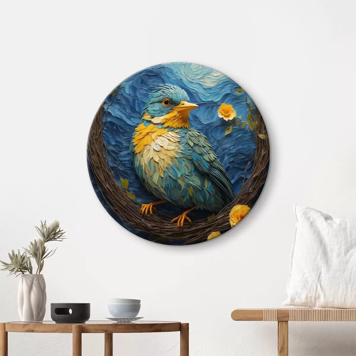 Runde Wandbilder Ein lebendiges Nest in einem ruhigen Blumenkranz Nr r36440