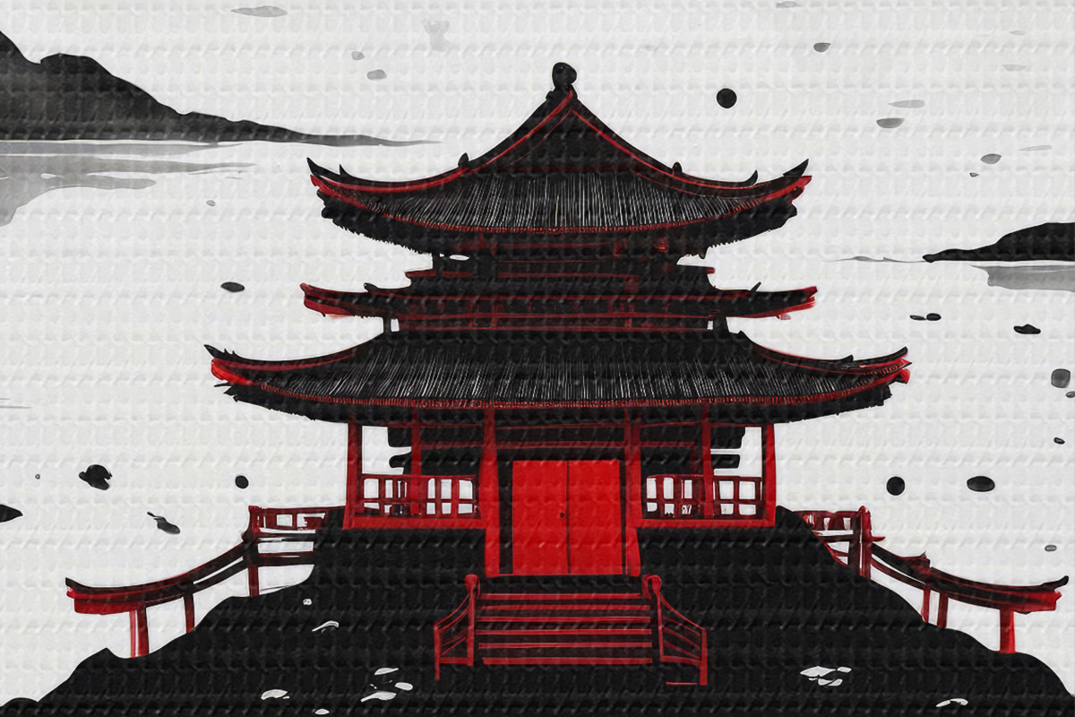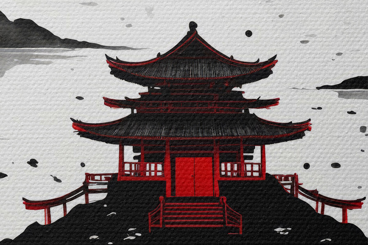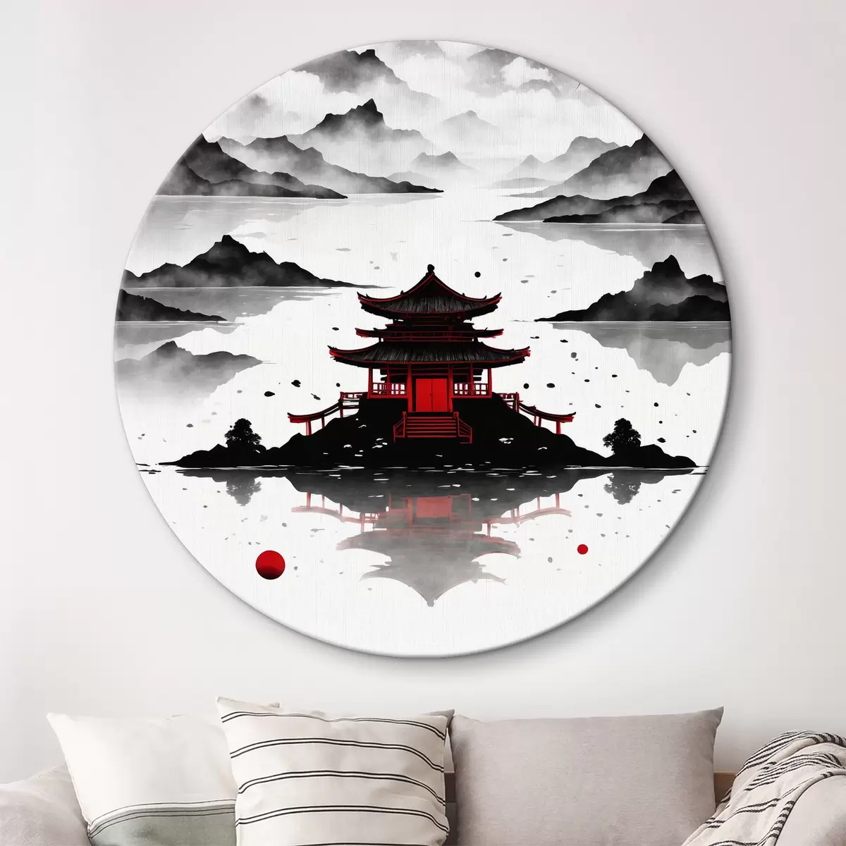 Runde Wandbilder Schwarz-weiße Fantasiemalerei im japanischen Stil r36441
