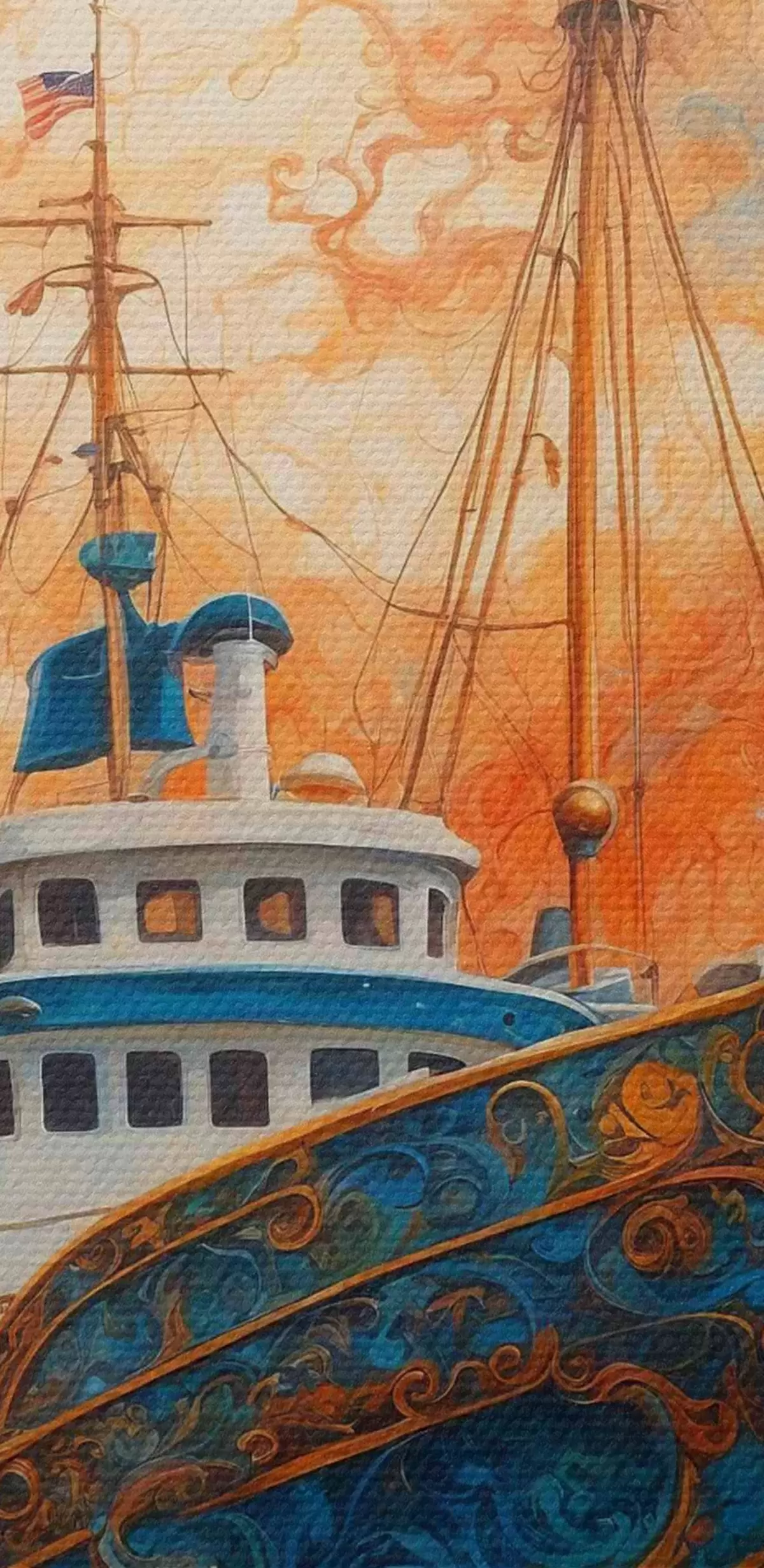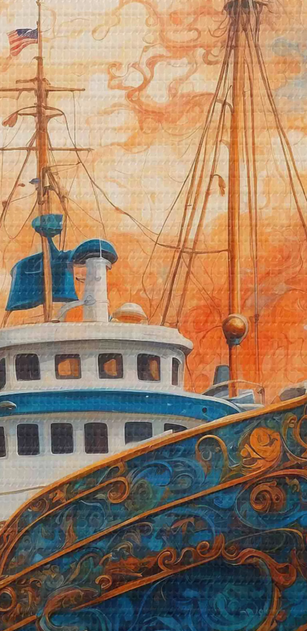 Runde Wandbilder Ein schwimmendes Schiff vor dem Hintergrund eines fantastischen Himmels. Nr r36443