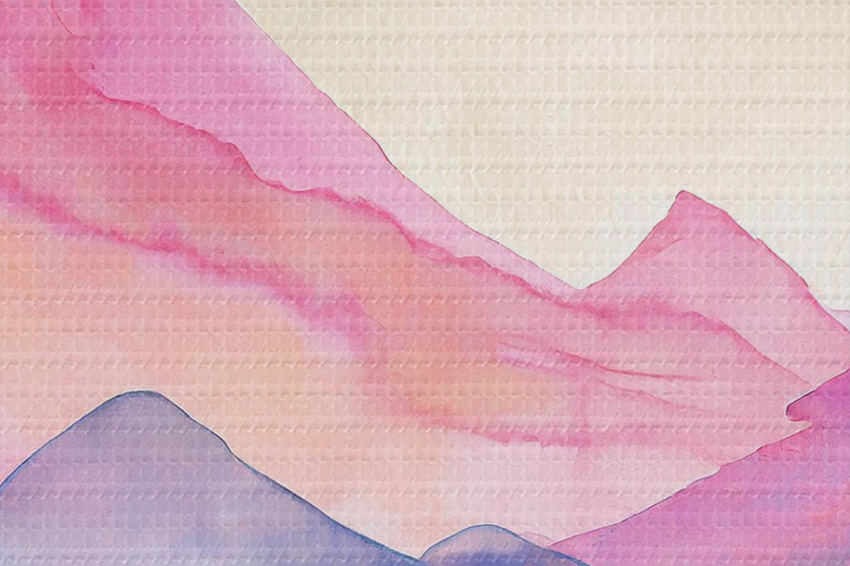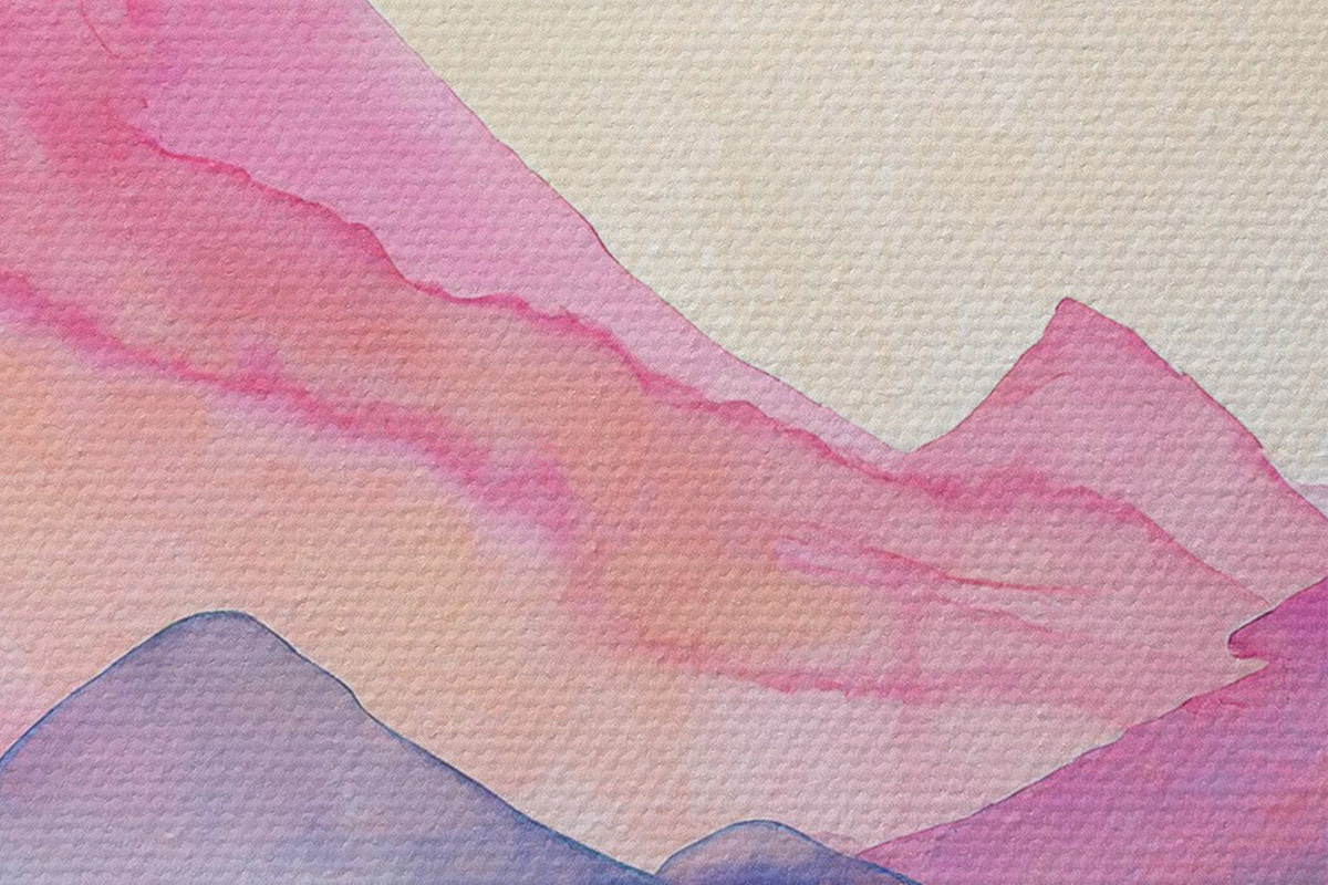 Runde Wandbilder Aquarell Berglandschaft, Sonnenaufgang, Soft lila, rosa und blauen Farben r36496