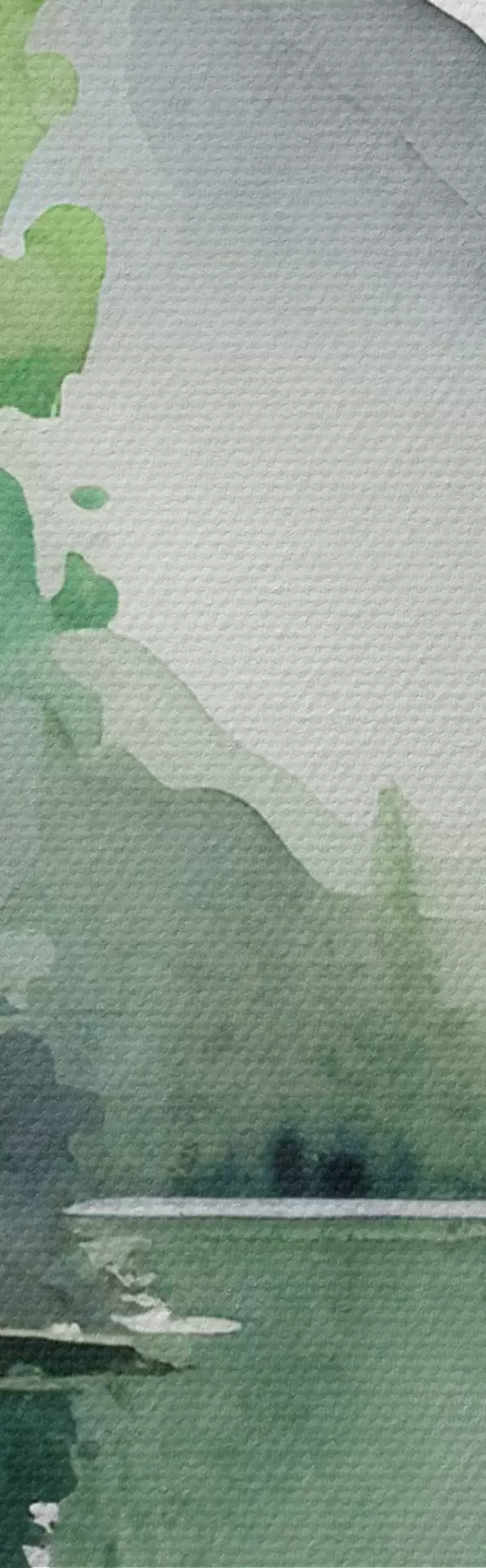 Runde Wandbilder Aquarell Landschaft von See und Wald, Frühling, natürliche grüne weiche Farben r36503