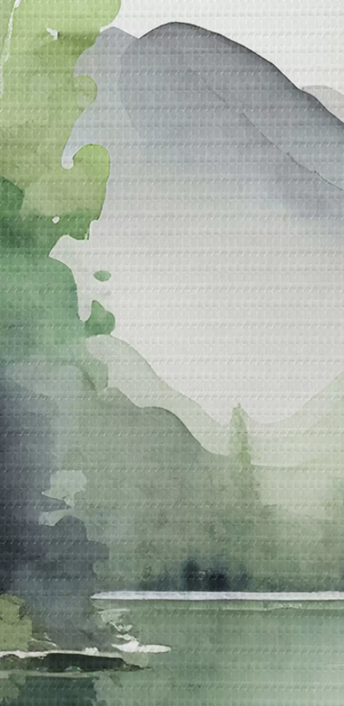 Runde Wandbilder Aquarell Landschaft von See und Wald, Frühling, natürliche grüne weiche Farben r36503