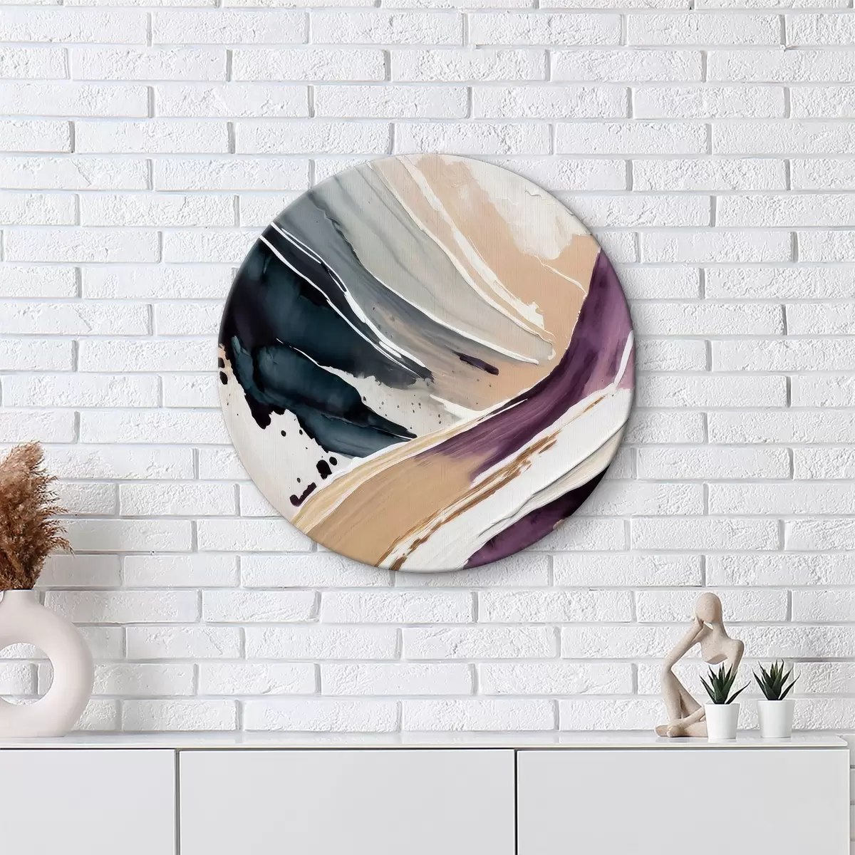 Runde Wandbilder Abstrakte Acryl-Kunst, Pinselstrich, Farbe Textur, beige, lila, blaue Farben r36504