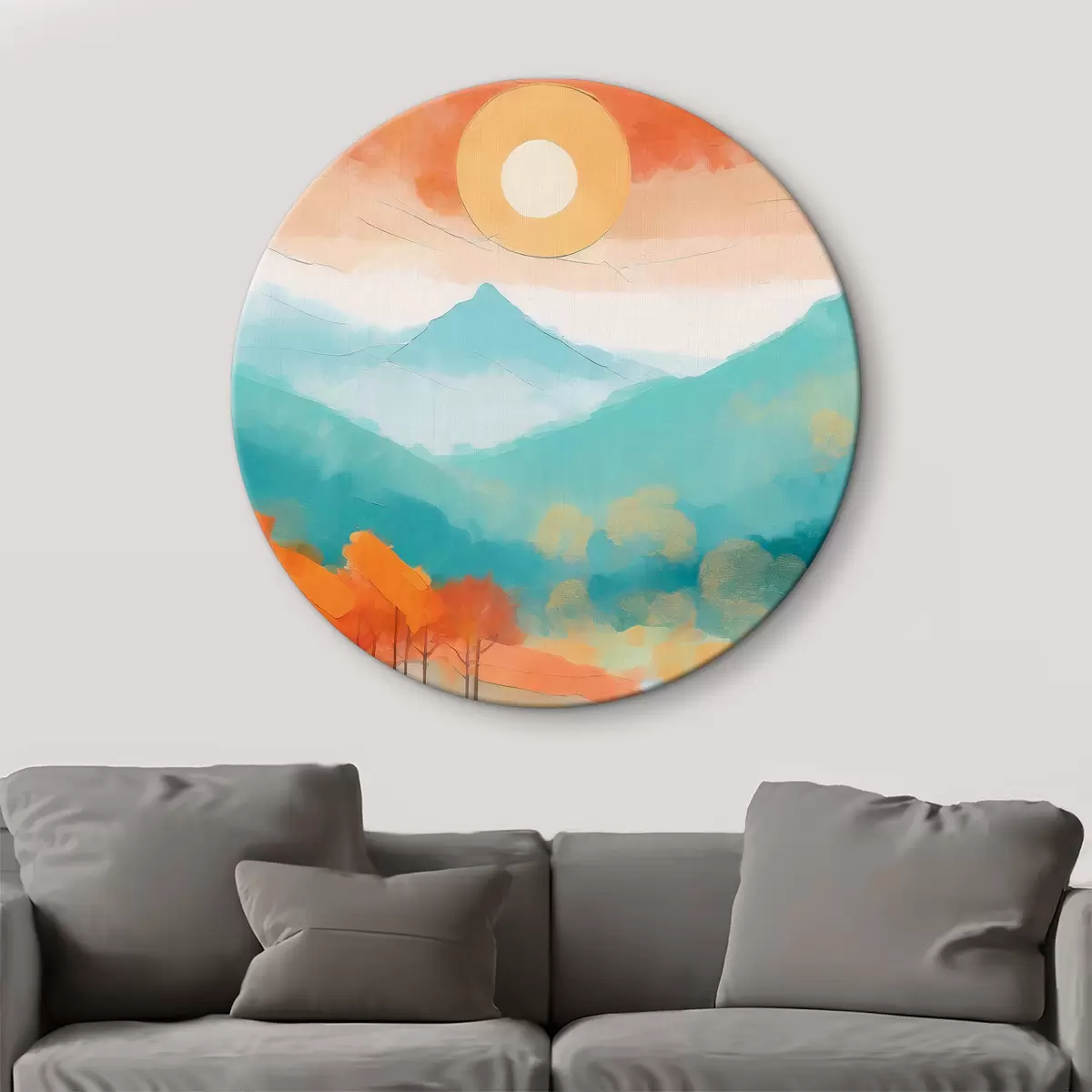 Runde Wandbilder Herbstliche Wärme in einer ruhigen Berglandschaft Nr r36506