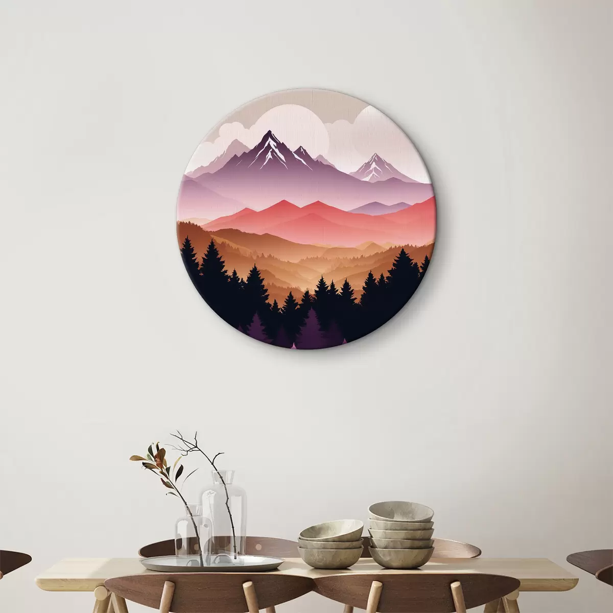 Runde Wandbilder Sonnenuntergang über den friedlichen Bergen r36527