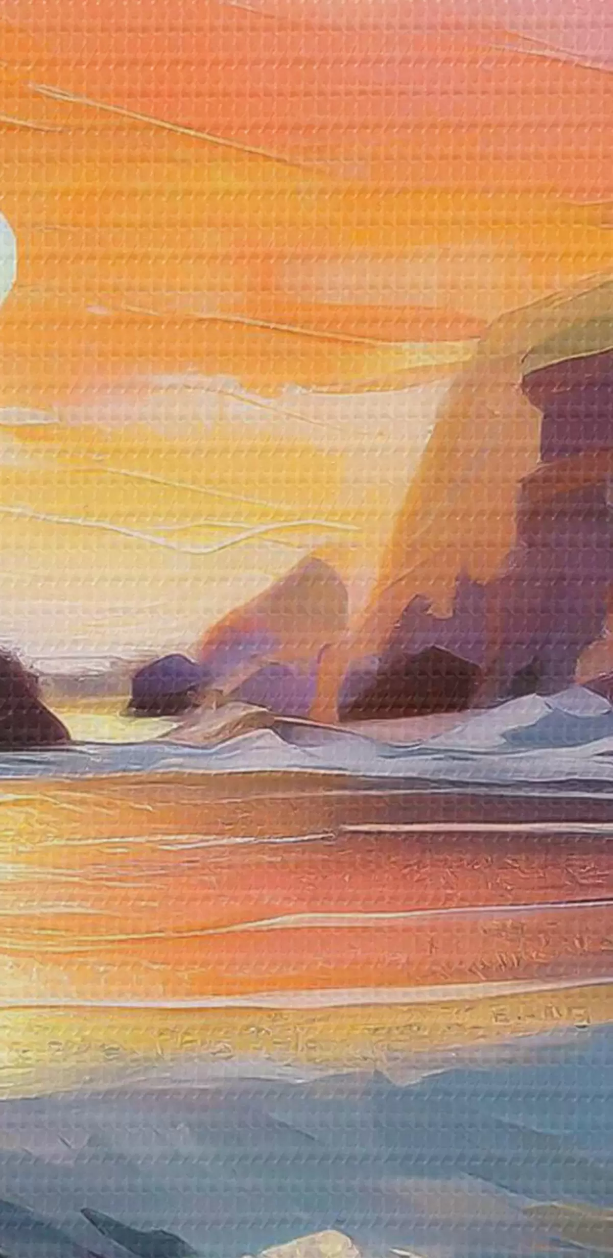 Runde Wandbilder Sonnenaufgang an der Küste, Meereswellen, lebhafte Pinselstriche, Acryl r36581