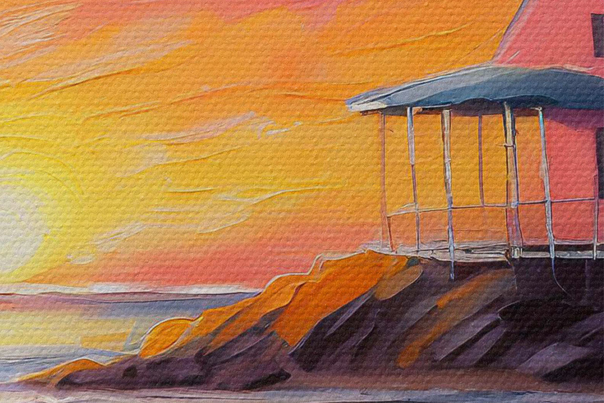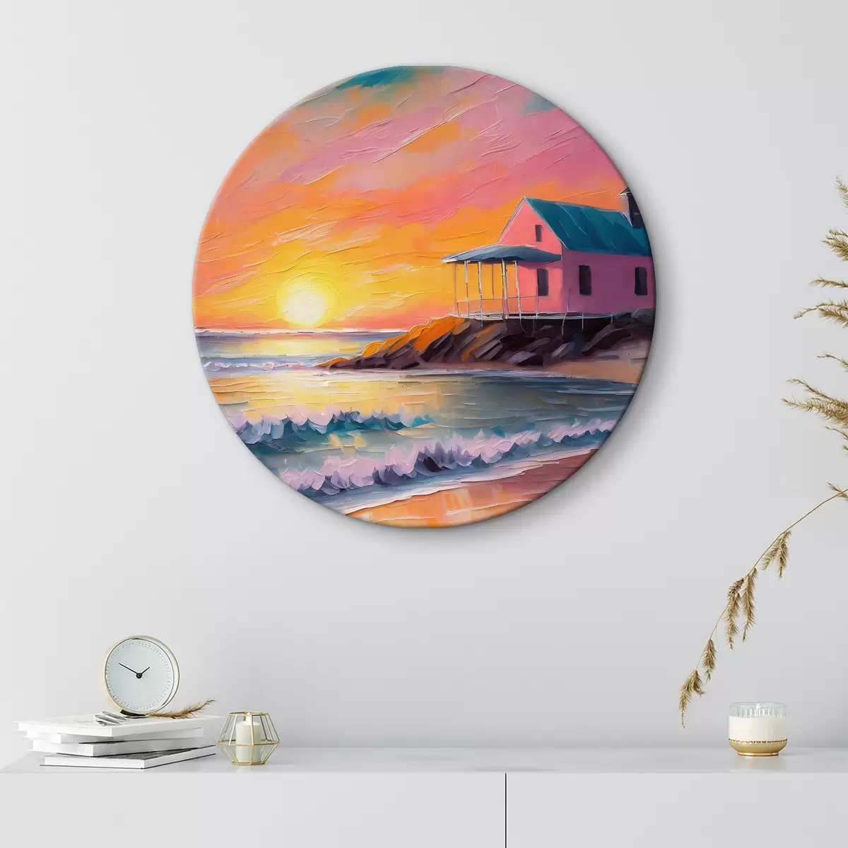 Runde Wandbilder Ein Rückzugsort am Meer unter einem strahlenden Himmel r36584