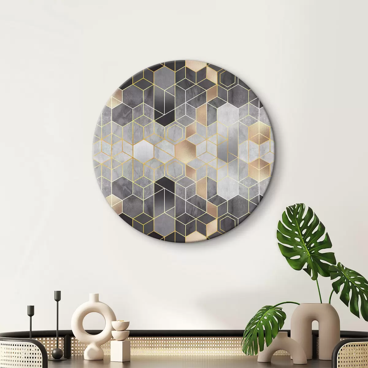 Runde Wandbilder Elegantes Sechseckmuster in neutralen Farben r36602