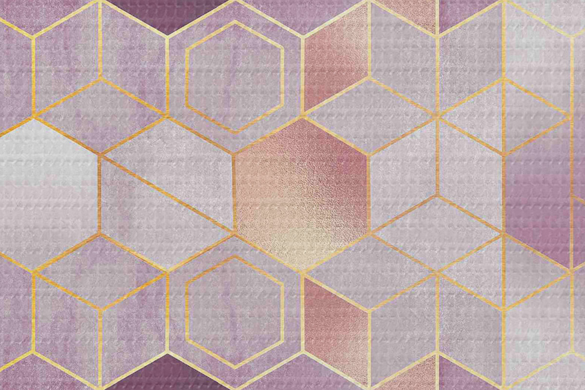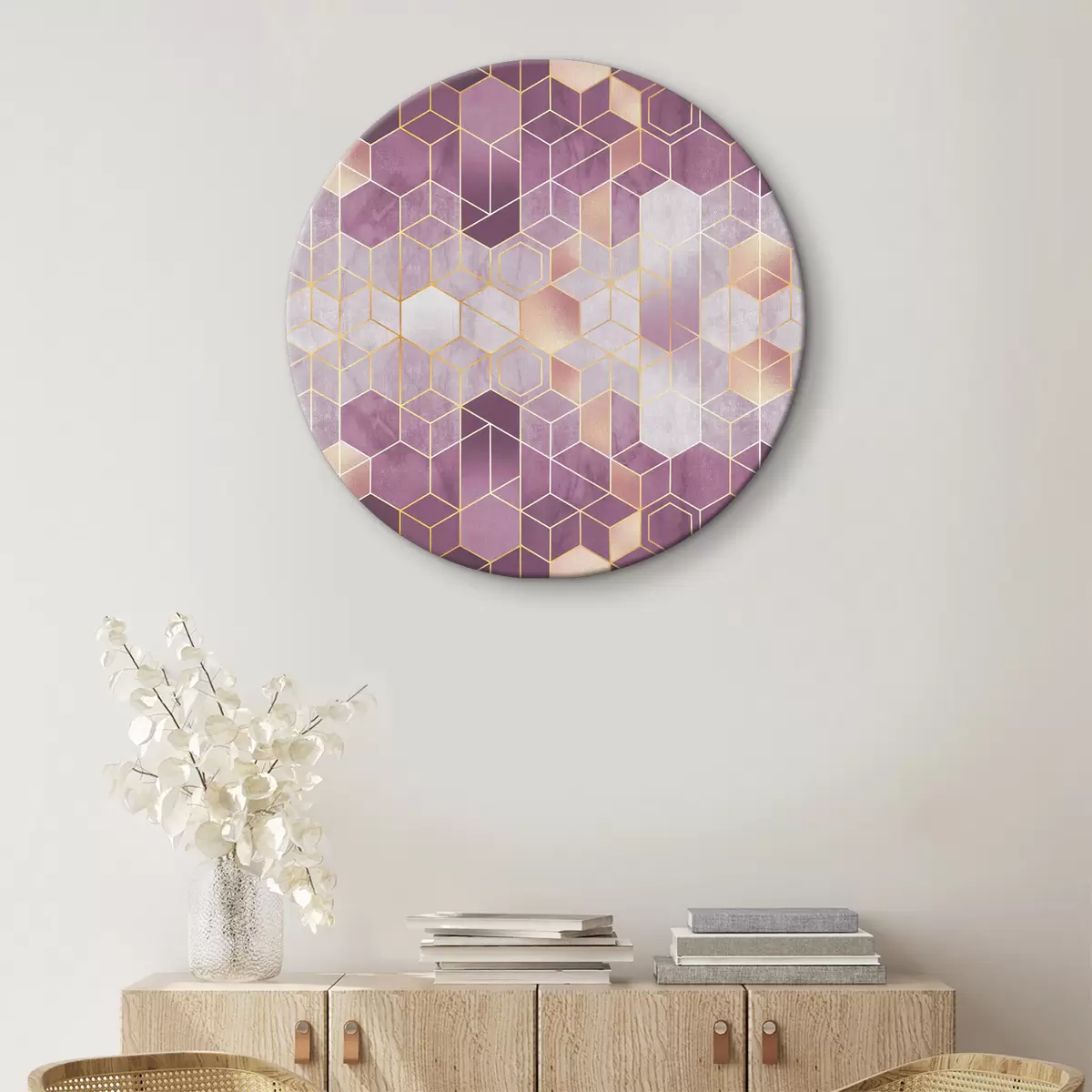 Runde Wandbilder Elegantes sechseckiges Muster in Lila-Tönen r36602v1