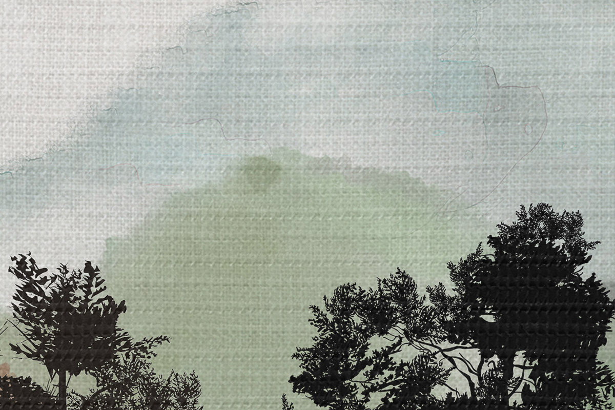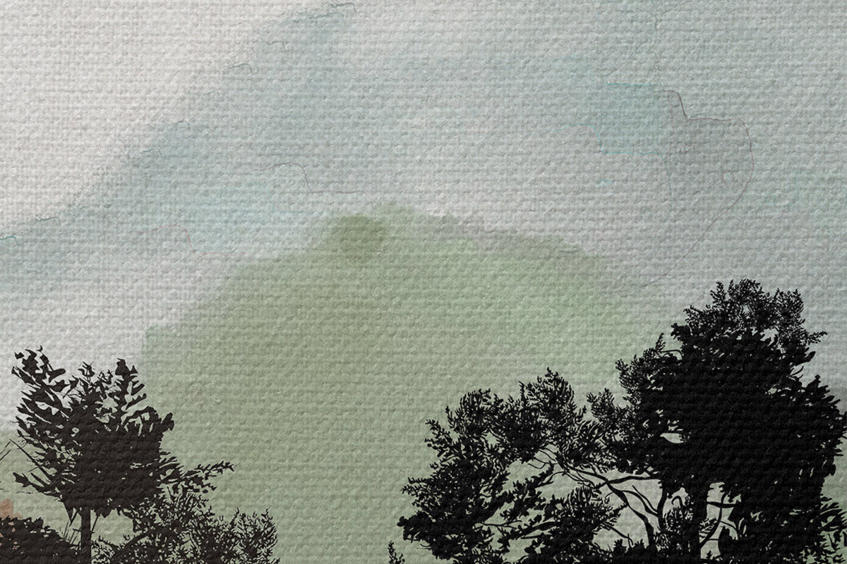 Runde Wandbilder Aquarell Berglandschaft mit Bäumen Nr r36603