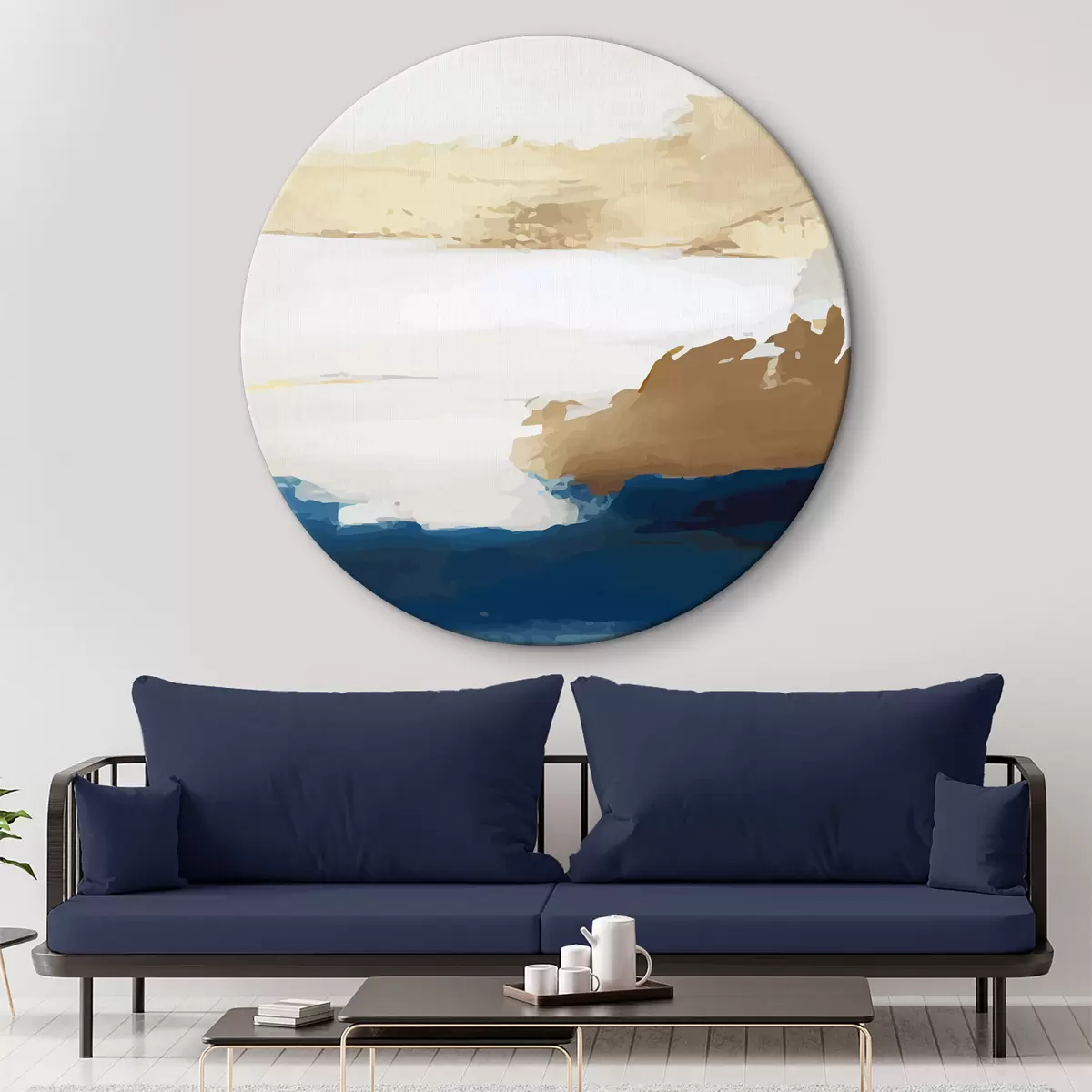 Runde Wandbilder Leichte Abstraktion mit blauen Akzenten r36622