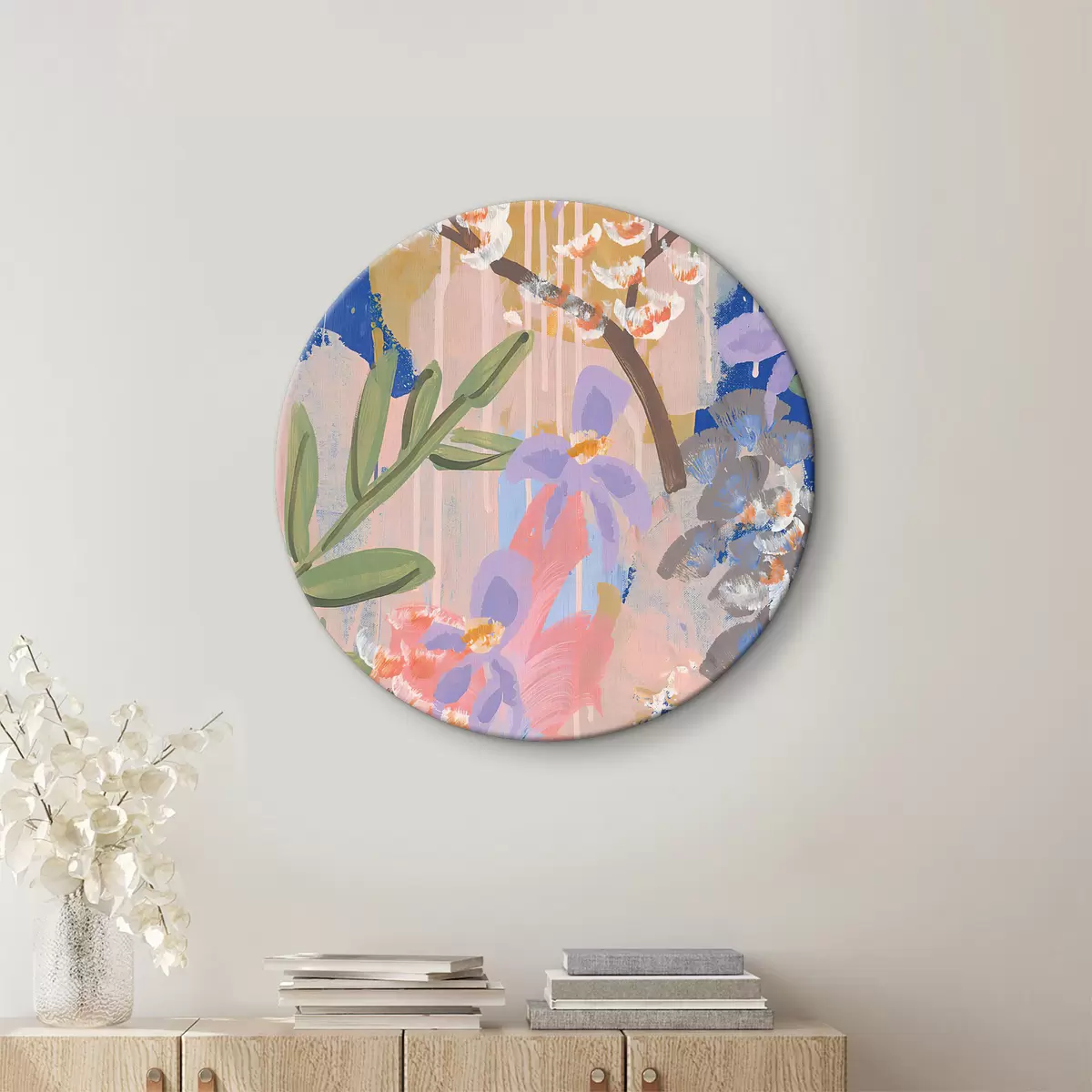 Runde Wandbilder Ein Gemälde mit Blumen und Blättern Nr r36626