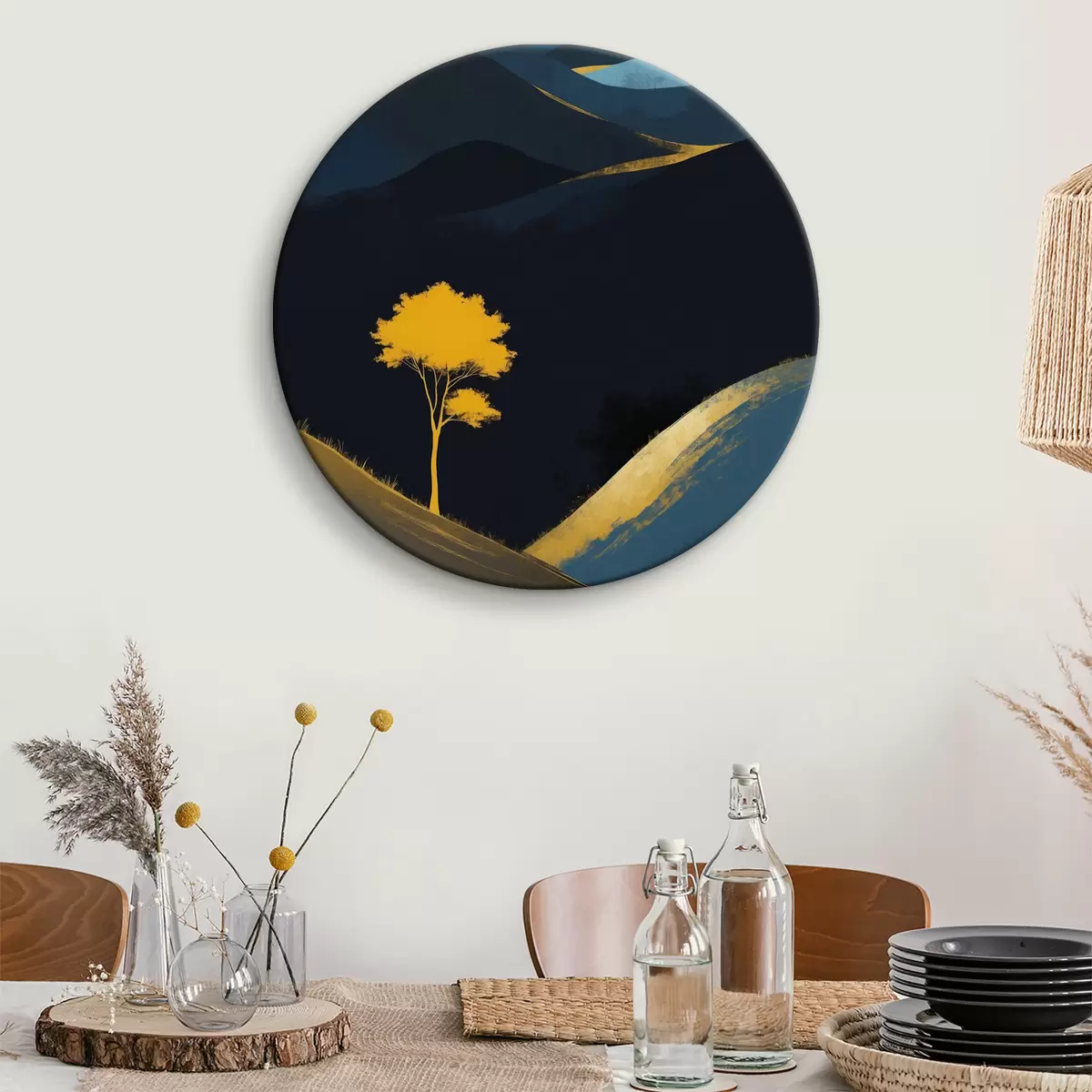 Runde Wandbilder Ein einsamer Baum unter einem sternenlosen Nachthimmel Nr r36639