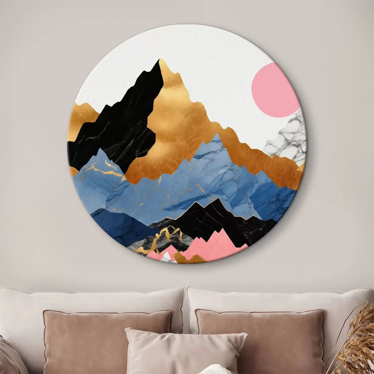 Runde Wandbilder Abstrakte Bergschichten mit rosa Sonne Nr r36643