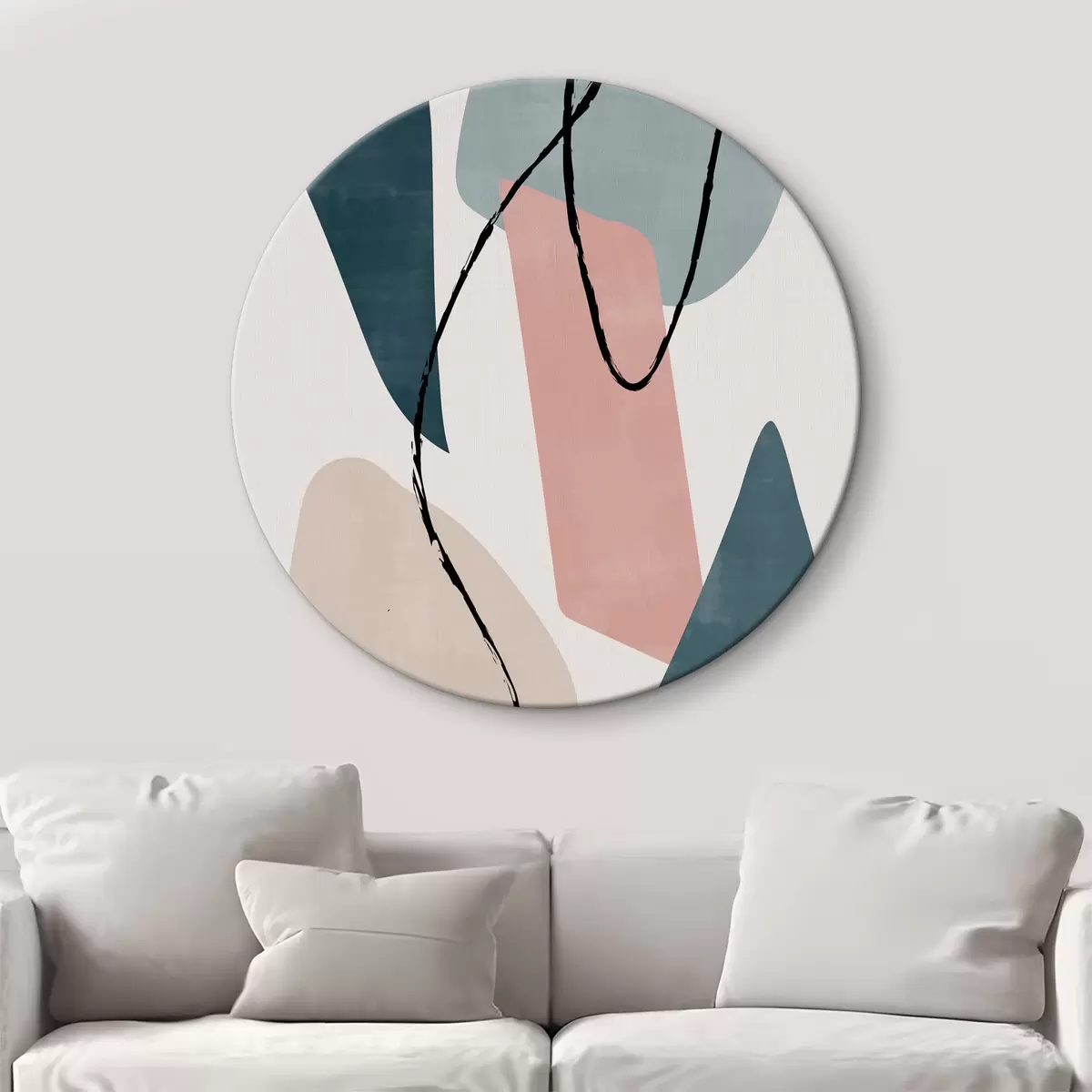 Runde Wandbilder Buntes Kunstwerk mit schwarzen Linien r36650