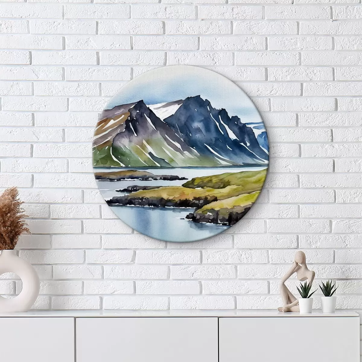 Runde Wandbilder Aquarell, das einen See und Berge darstellt r36679