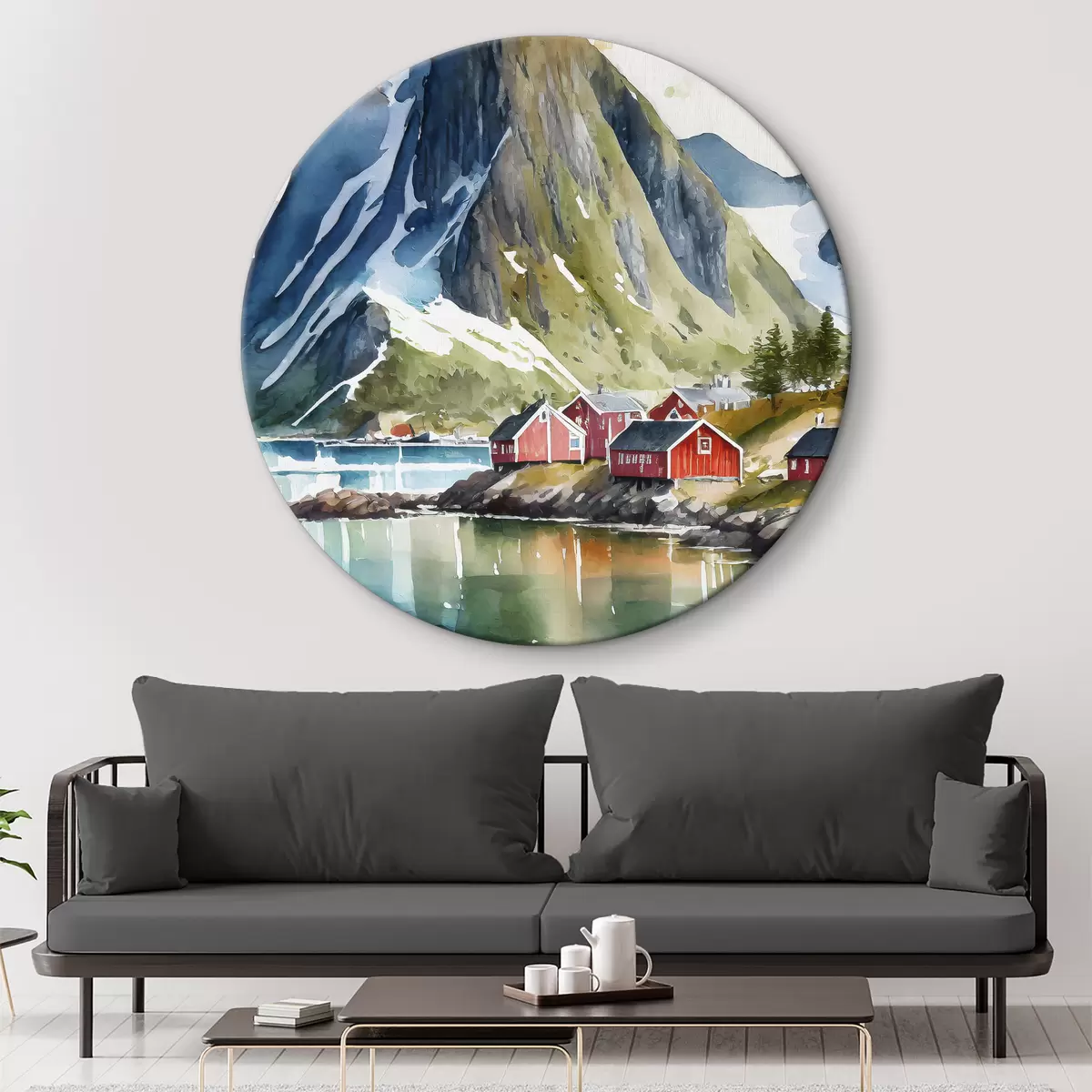 Runde Wandbilder Norwegen, Natur, Aquarell, Lofoten Nr r36685