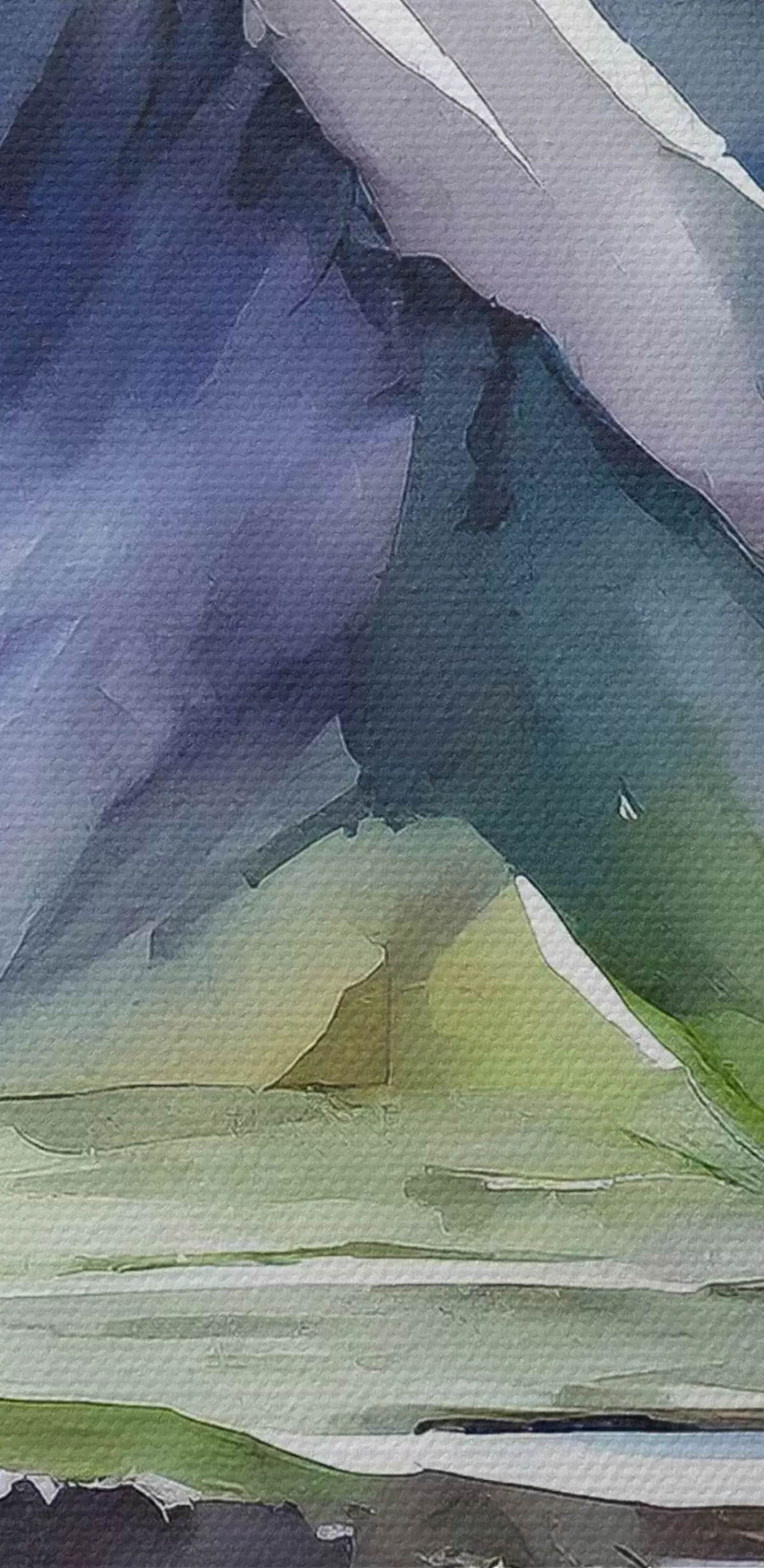 Runde Wandbilder Island Natur Aquarell, Berge, Wasserfälle Nr r36687