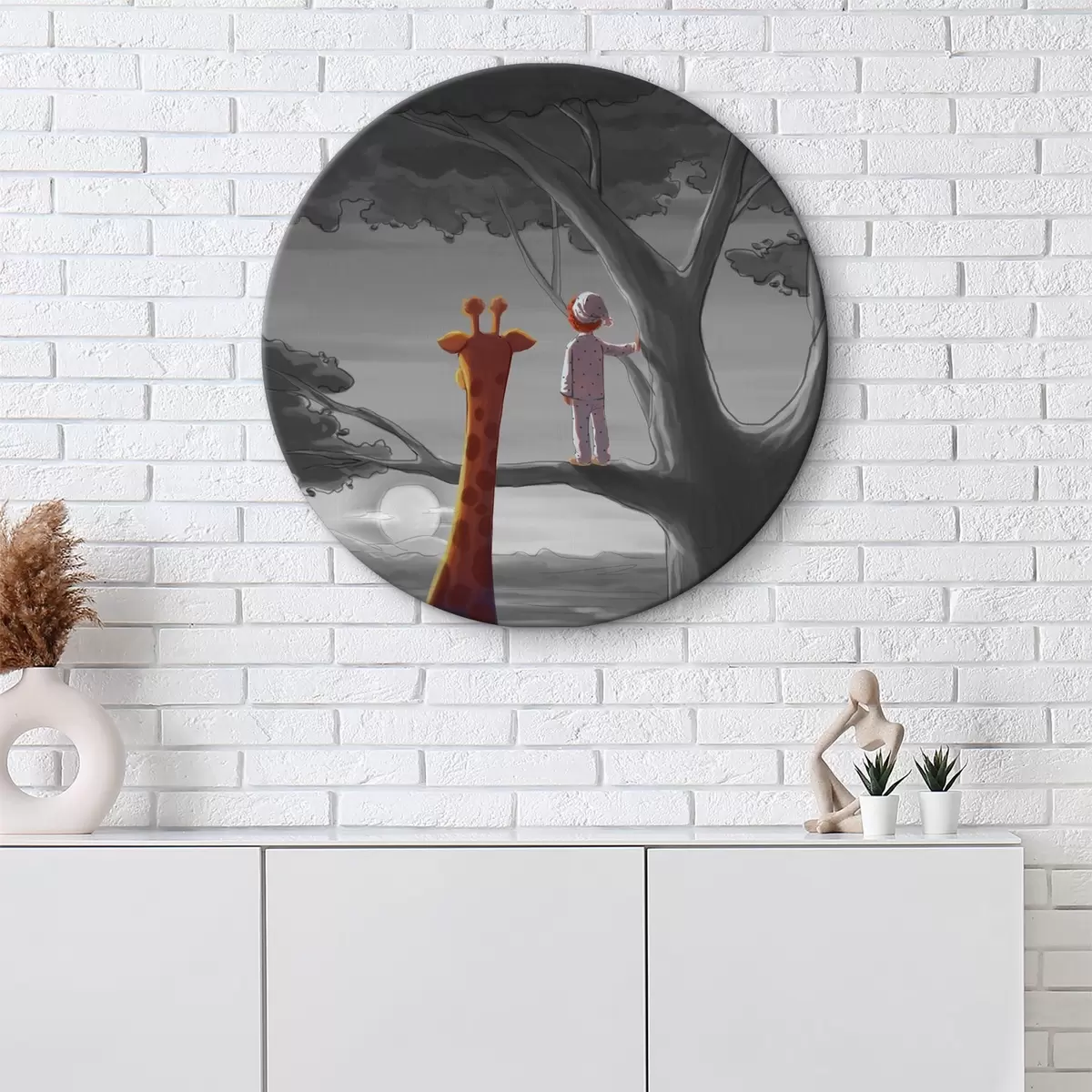 Runde Wandbilder Giraffe und Baby auf einem Baum stehend Nr r36700