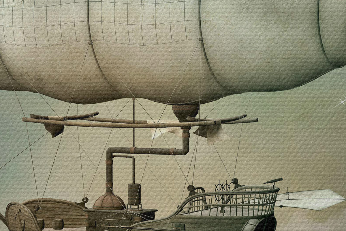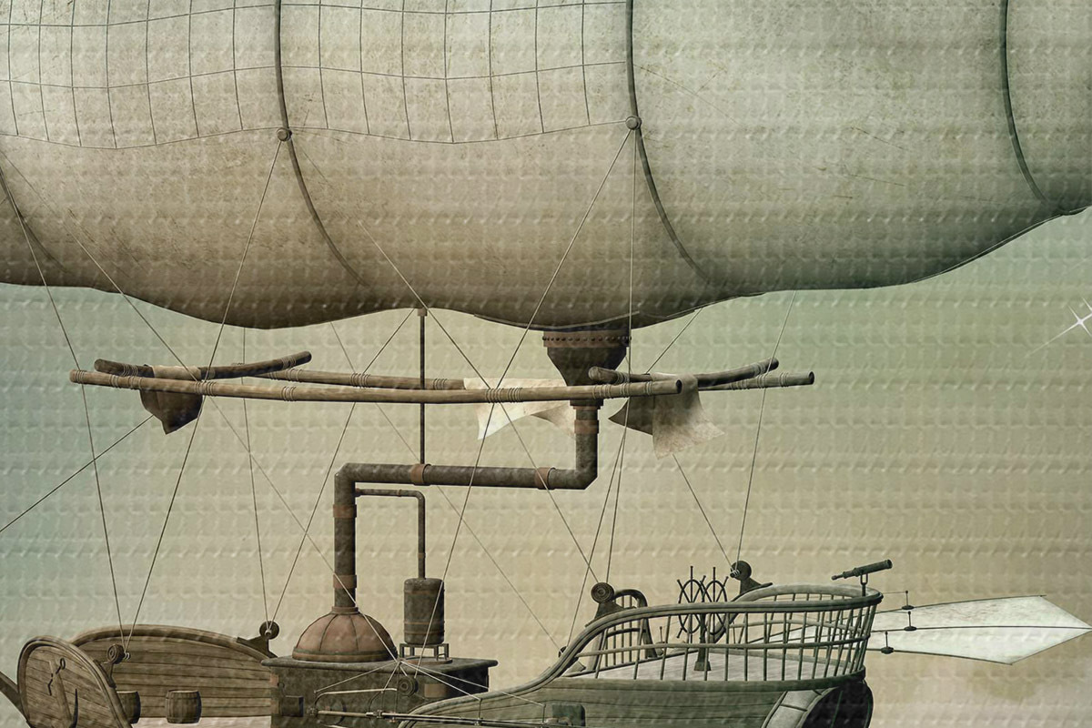 Runde Wandbilder Steampunk-Luftschiff am Himmel Nr r36706