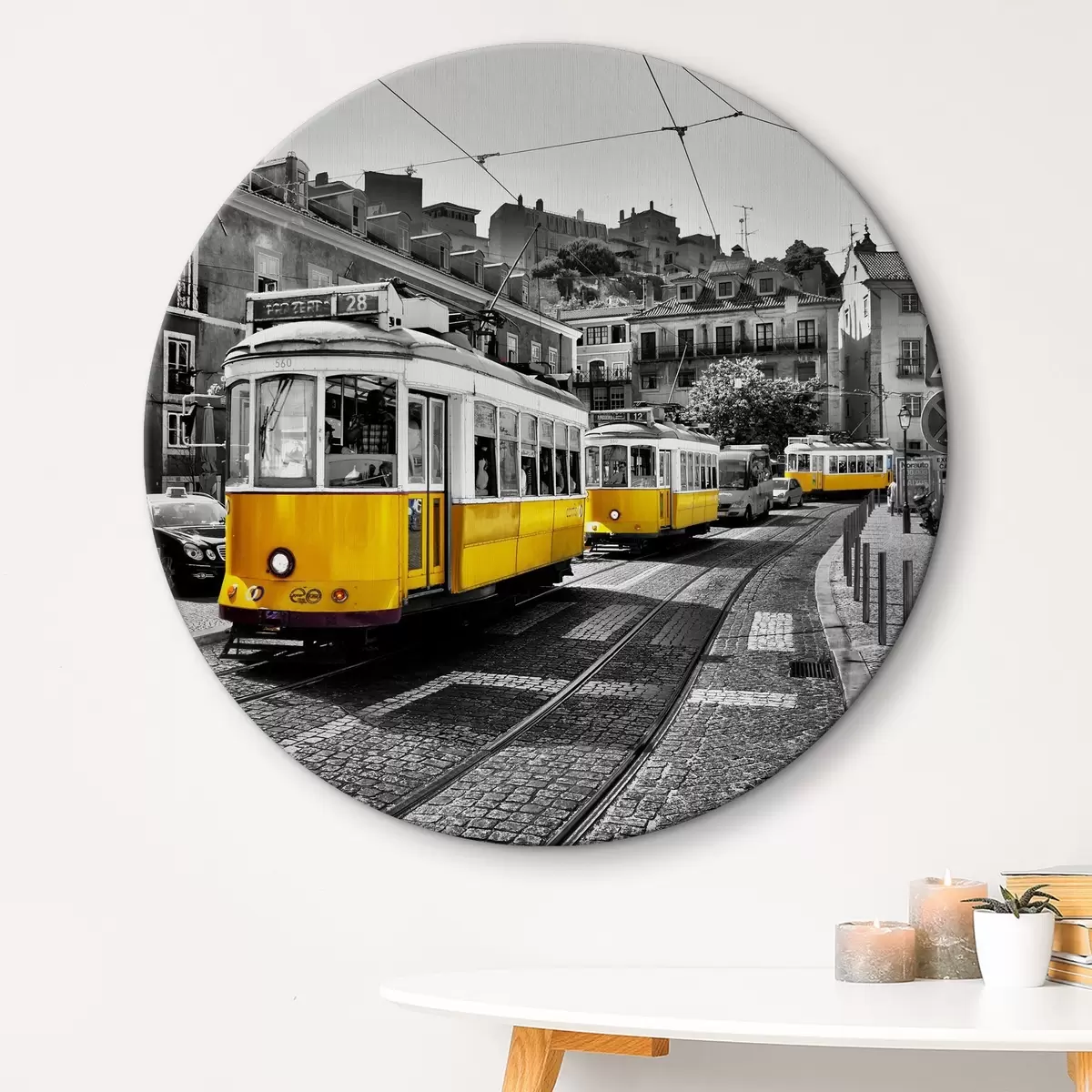 Runde Wandbilder Gelber Kinderwagen auf der Straße Nr r36708