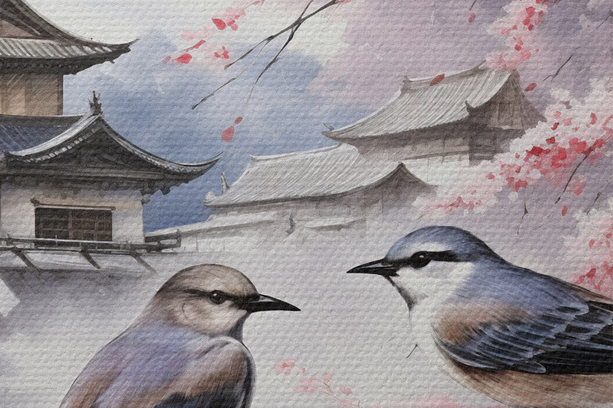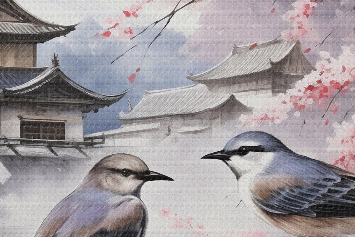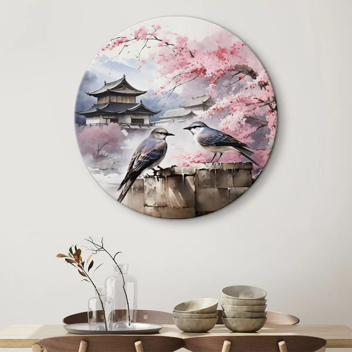 Runde Wandbilder Zwei Vögel auf dem Hintergrund der blühenden Sakura Nr r36815