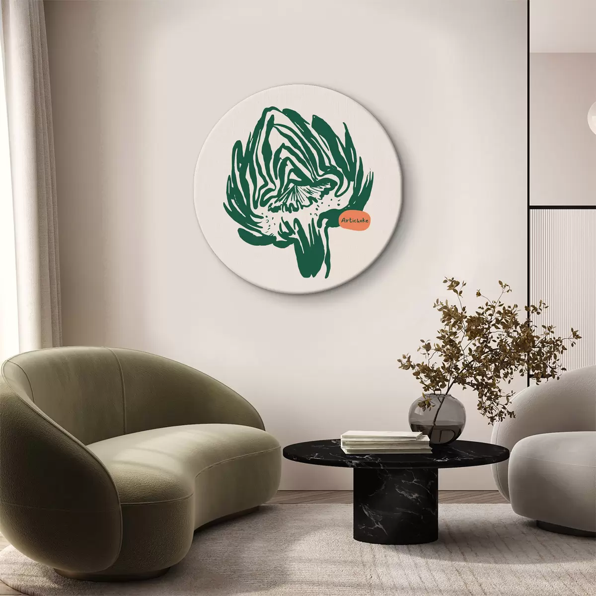 Runde Wandbilder Zeichnung einer Pflanze in Grün und Weiß r36868