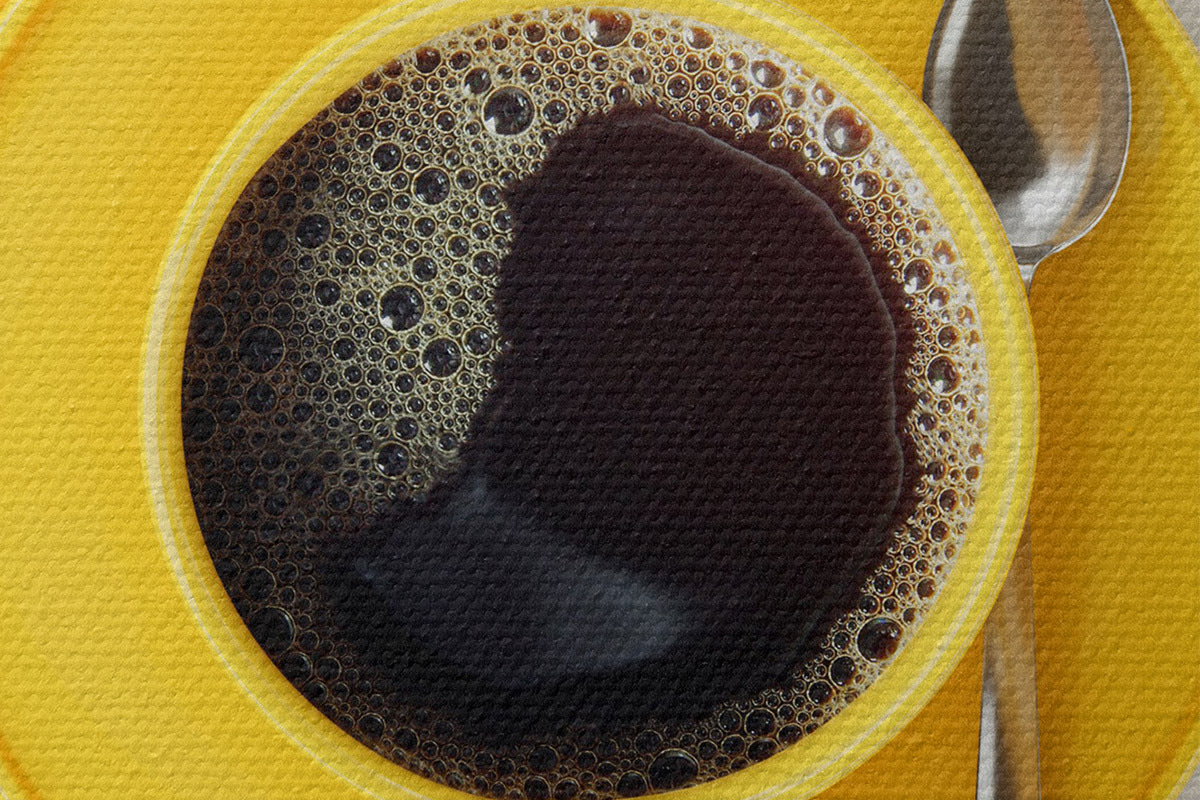 Runde Wandbilder Gelber Becher mit Kaffee und Bohnen Nr r37041