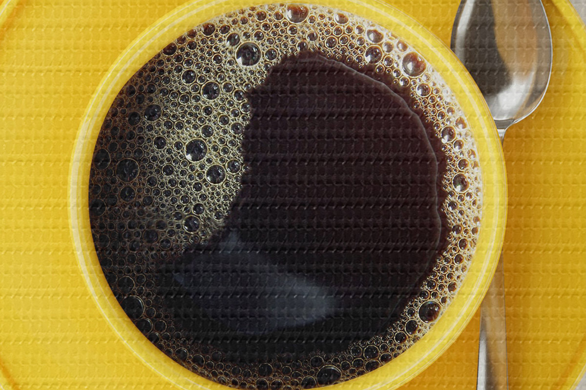 Runde Wandbilder Gelber Becher mit Kaffee und Bohnen r37041