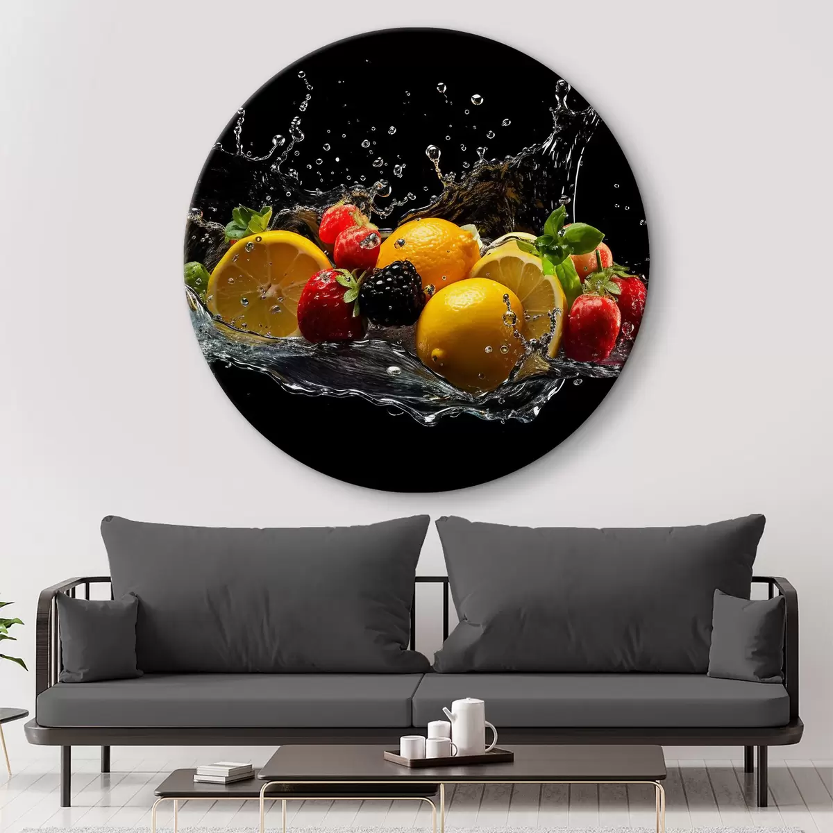 Runde Wandbilder Früchte im Wasser spritzen Nr r37044