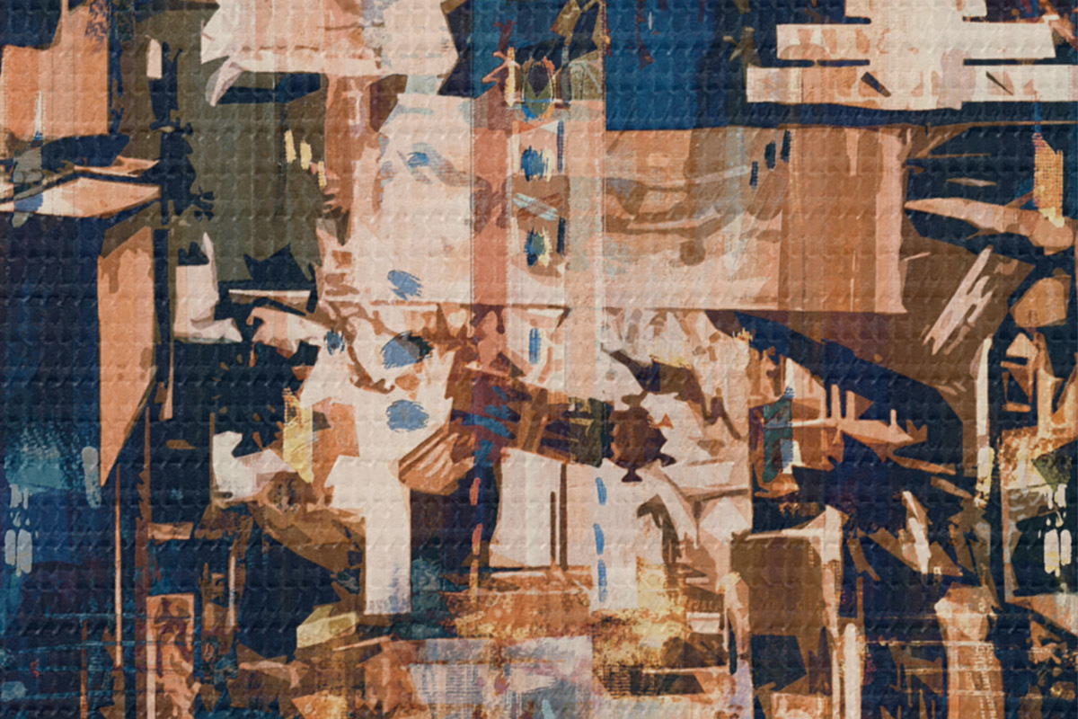 Um die Leinwand auf Keilrahmen zu spannen, ohne das Bild zu beschädigen, verwenden wir ein gespiegeltes Bild.