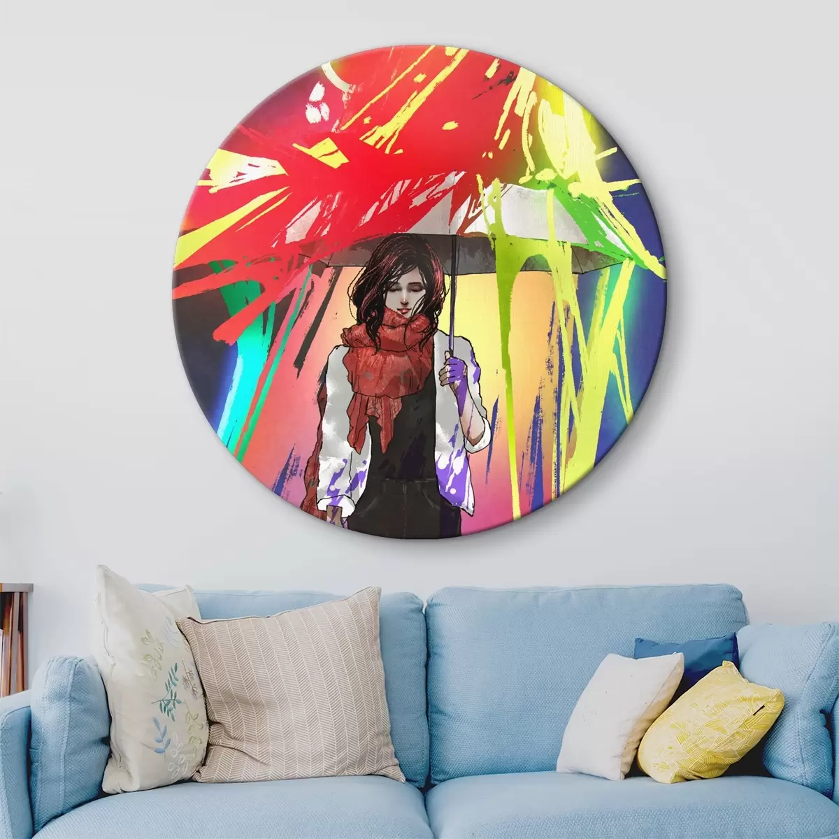 Runde Wandbilder Frau hält einen Regenschirm Nr r37089