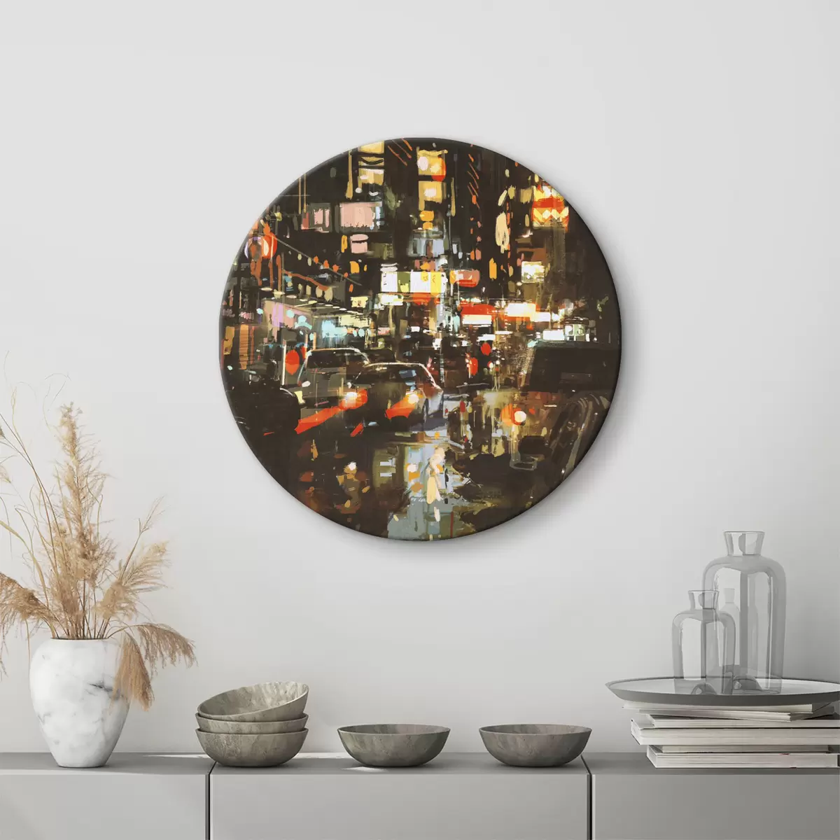 Runde Wandbilder Stadtstraße mit Autos und Lichtern Nr r37097