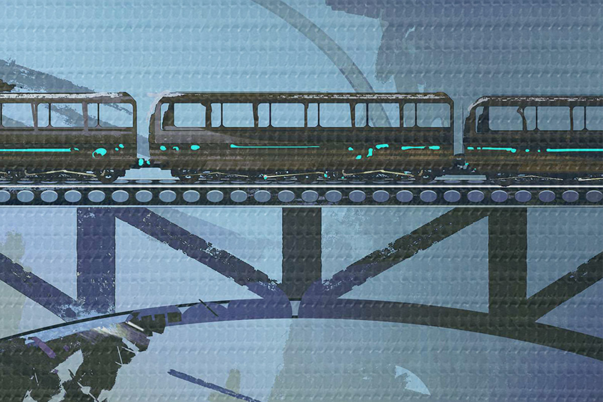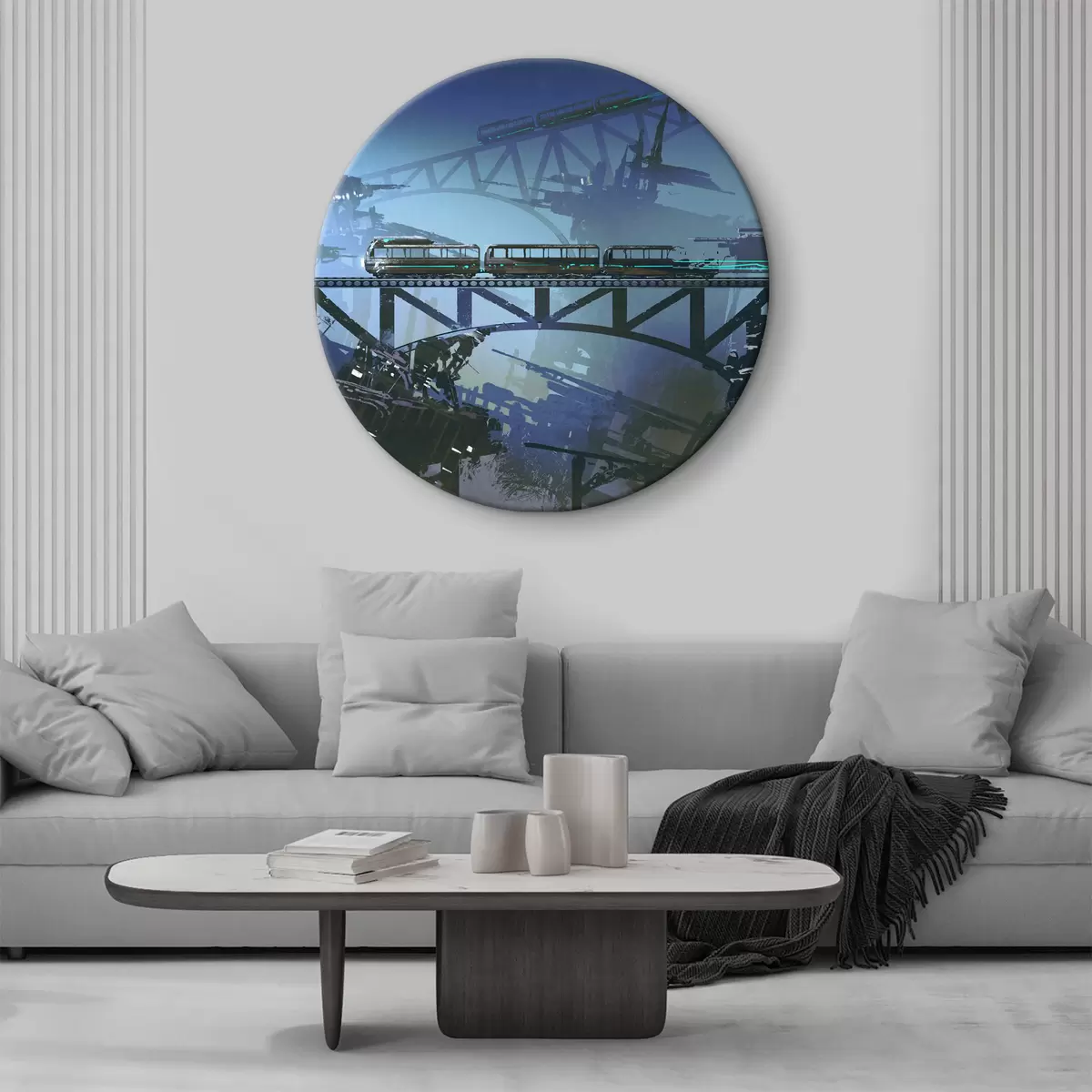 Runde Wandbilder Zug auf der Brücke über die Stadt r37106