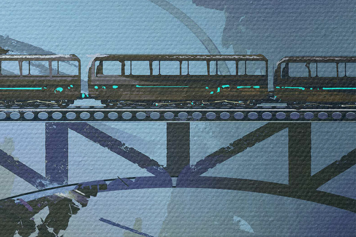 Runde Wandbilder Zug auf der Brücke über die Stadt Nr r37106