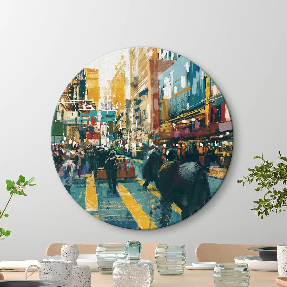 Runde Wandbilder Stadtansichten Belebte Großstadtstraße r37108