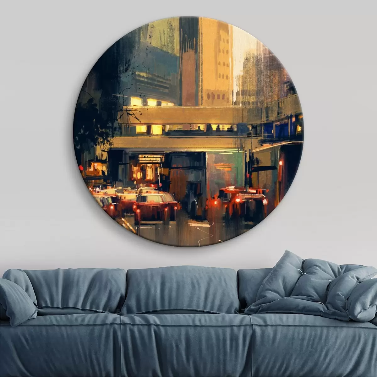 Runde Wandbilder Straße mit Autos und Gebäuden Nr r37110