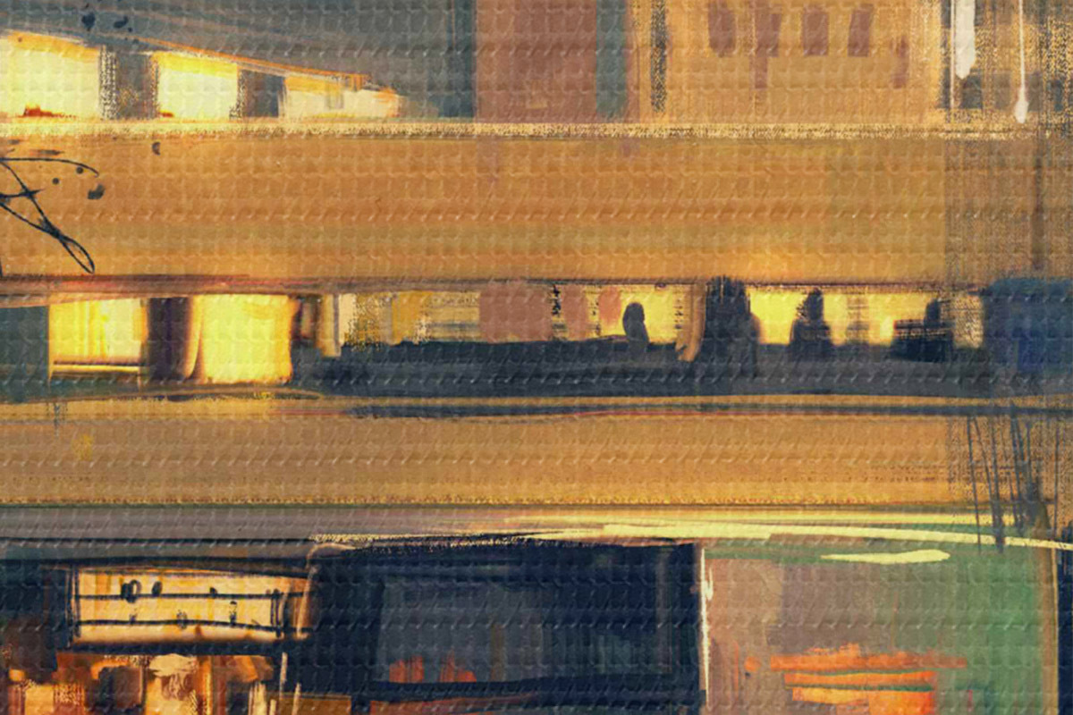 Um die Leinwand auf Keilrahmen zu spannen, ohne das Bild zu beschädigen, verwenden wir ein gespiegeltes Bild.