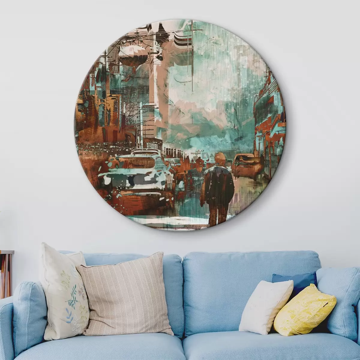 Runde Wandbilder Große Retro-Metropole im Grunge-Stil Nr r37112