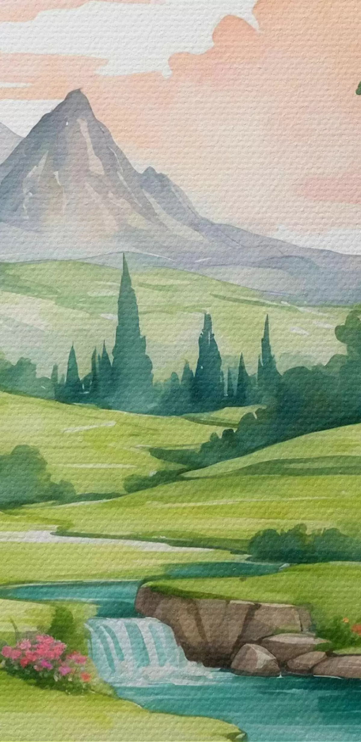 Runde Wandbilder Aquarell, das einen Fluss und Blumen darstellt r37116