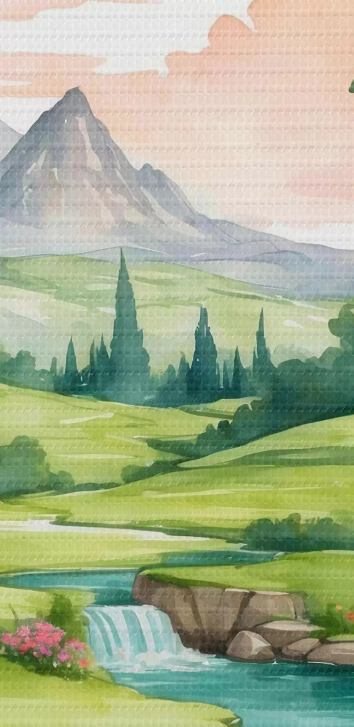 Runde Wandbilder Aquarell, das einen Fluss und Blumen darstellt Nr r37116