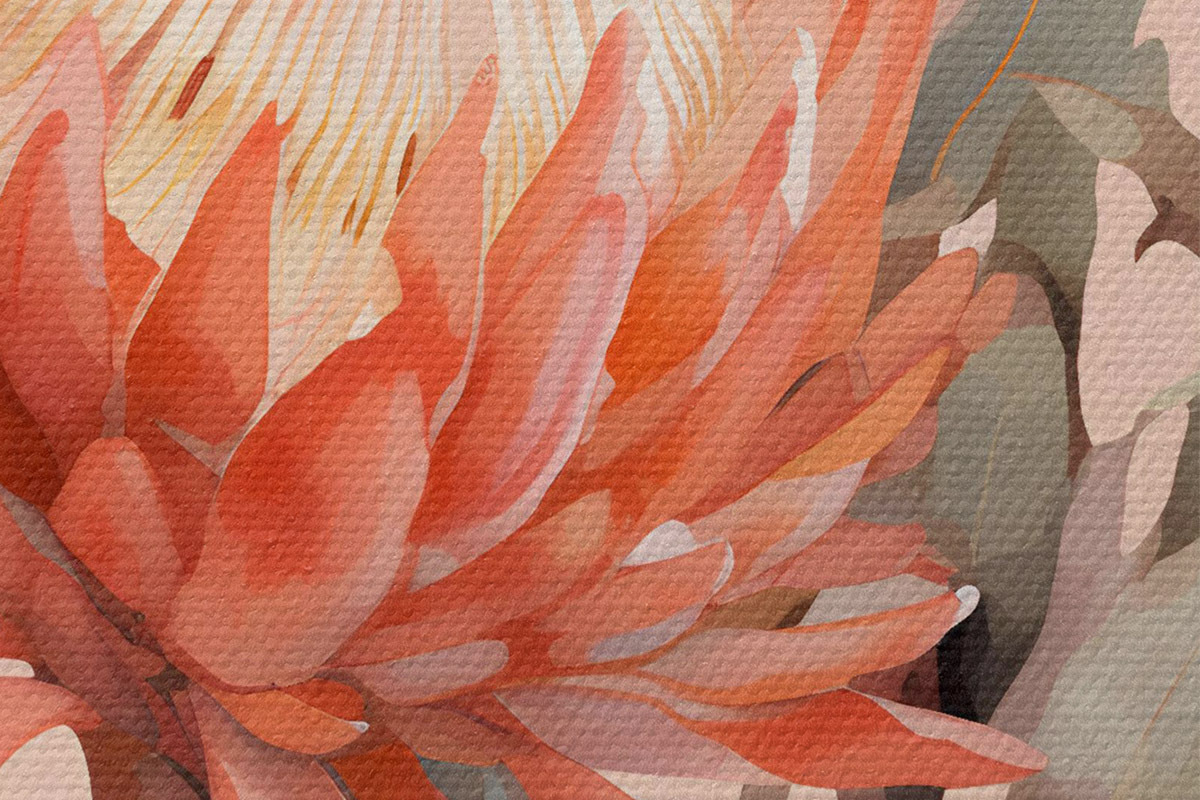Drei Materialtypen stehen zur Verfügung: Economic Canvas - ein dichtes und haltbares Material für den Digitaldruck, identisch mit Malerleinwand, wasserfeste Oberfläche, realistische Wiedergabe von Details, mittelkörniges Material. Premium Canvas - die Textur ähnelt der einer Malerleinwand (verwobene kleine Fäden). Weiche, detaillierte Wiedergabe des Bildes auf einer matten Oberfläche. Eco-Premium - hochwertiges Gewebe aus 100% Baumwolle. Dank der natürlichen Baumwollfasern ist das Material langlebig und verschleißfest. Hervorragende Farbwiedergabe und Detailtreue.